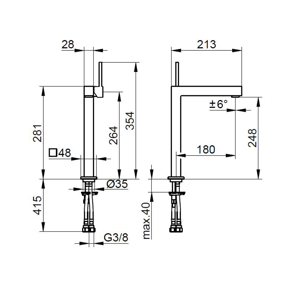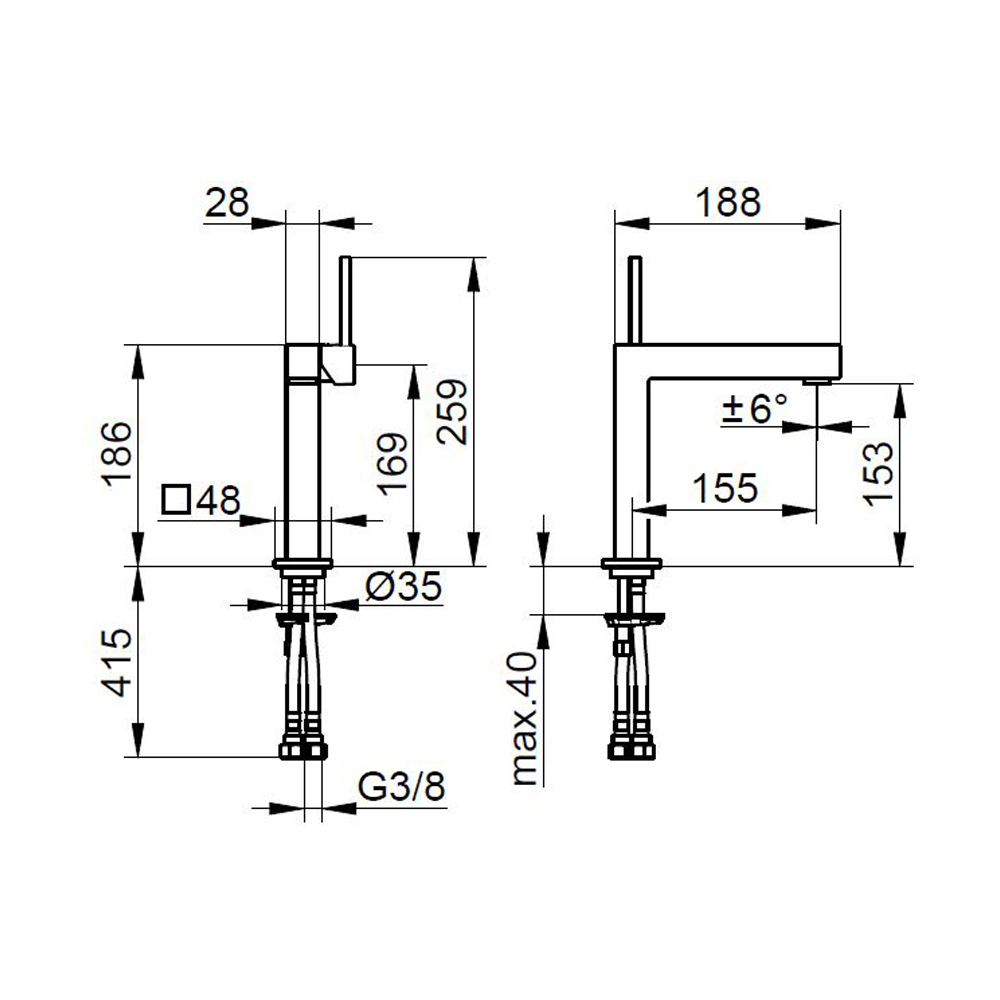 Firkantet design etgrebs håndvaskarmatur 3 størrelser.