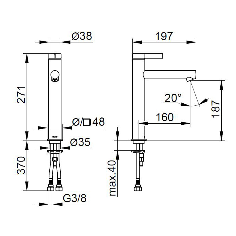 - belufter M 20x1, trykrør 570 mm, G 3/8 tomme;