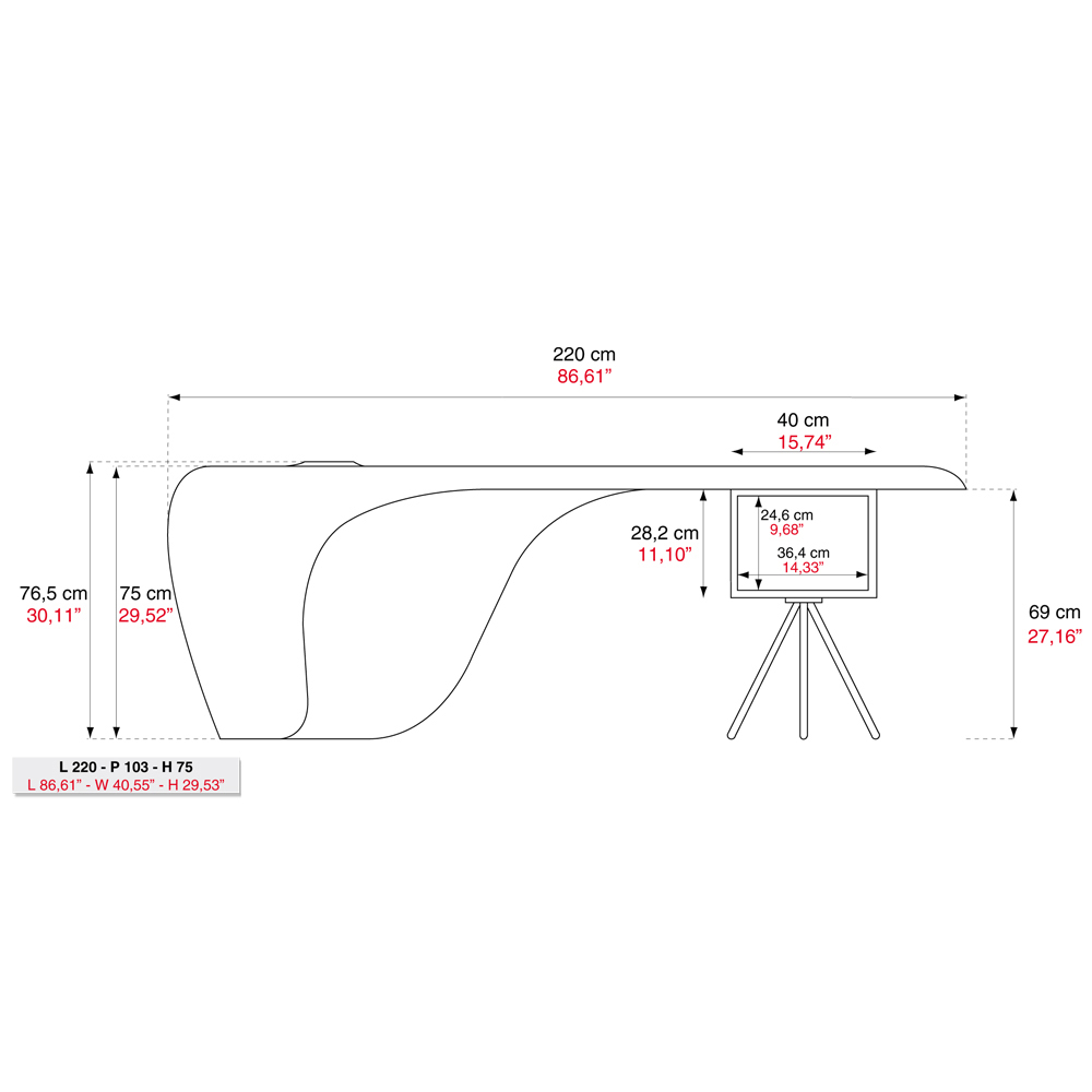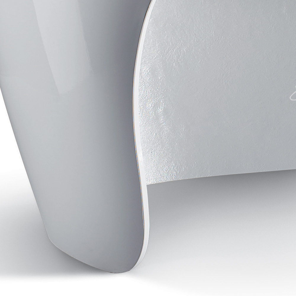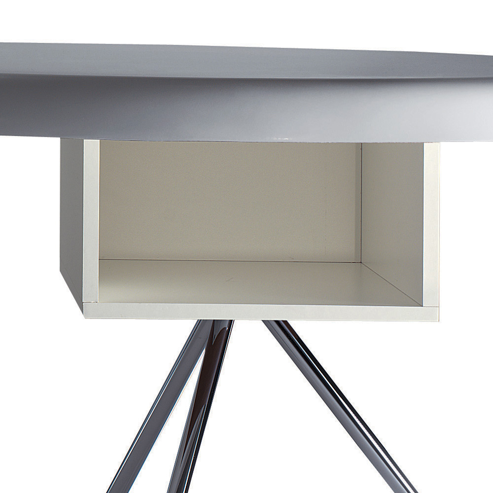 Dette skrivebord består af en selvbærende støbt skal i high density polyurethan, tilgængelig i tre forskellige varianter: Glossy, Embossed Matt eller i den metalliske version. Når du har valgt finishen på skrivebordet, kan du også vælge den farvevariant, der passer bedst til dig.