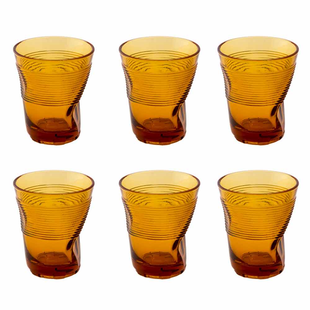 Flerbruksglas til vand, drikkevarer, cocktails med et moderne design sammenkrøllet i farvet glas, 12 stykker.