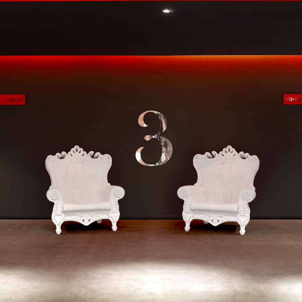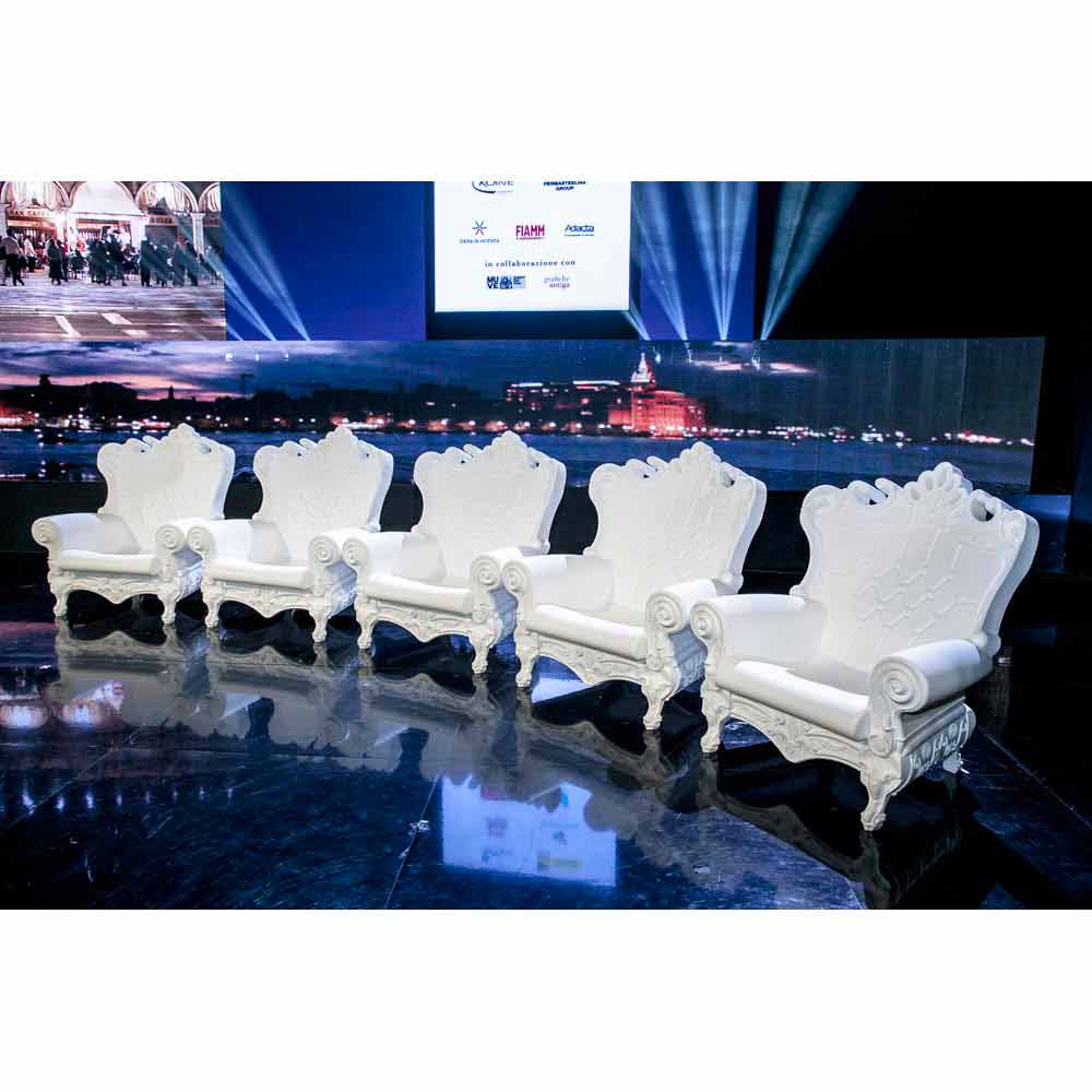 Queen Of Love er en lænestol, der egner sig til både indendørs og udendørs miljøer. Et supplement til et unikt lavet i Italien-design, der umiddelbart kan tiltrække opmærksomhed takket være sin majestæt og krone enhver, der sidder på den. Perfekt som et smart touch til aftener og arrangementer eller som ramme om særlige lejligheder.