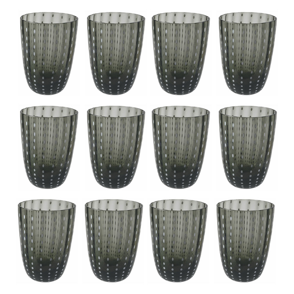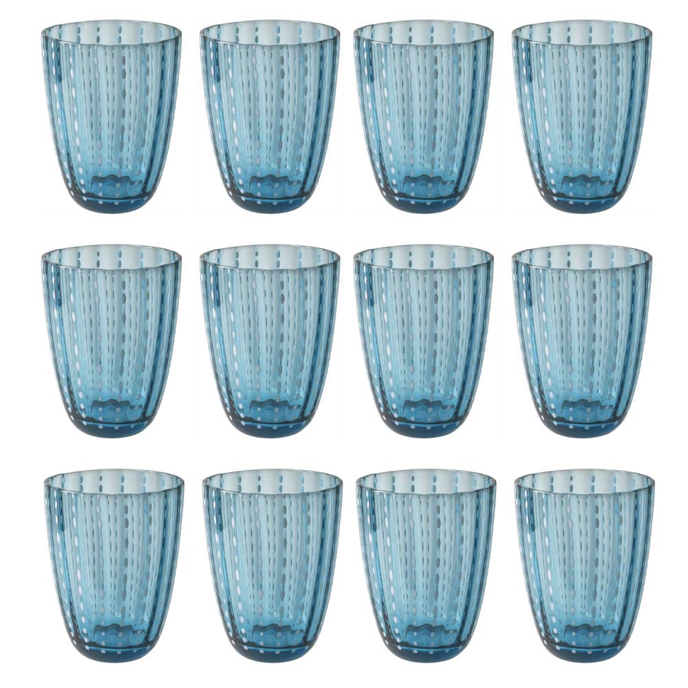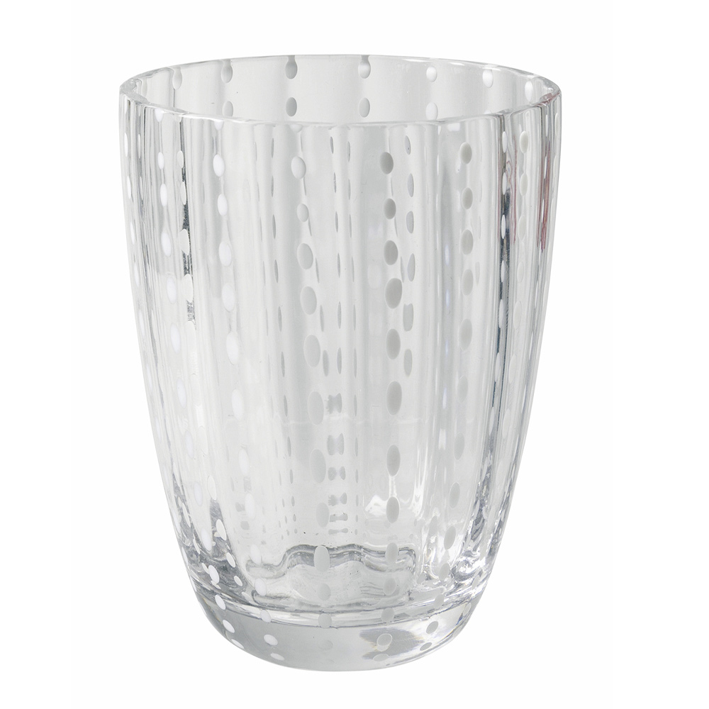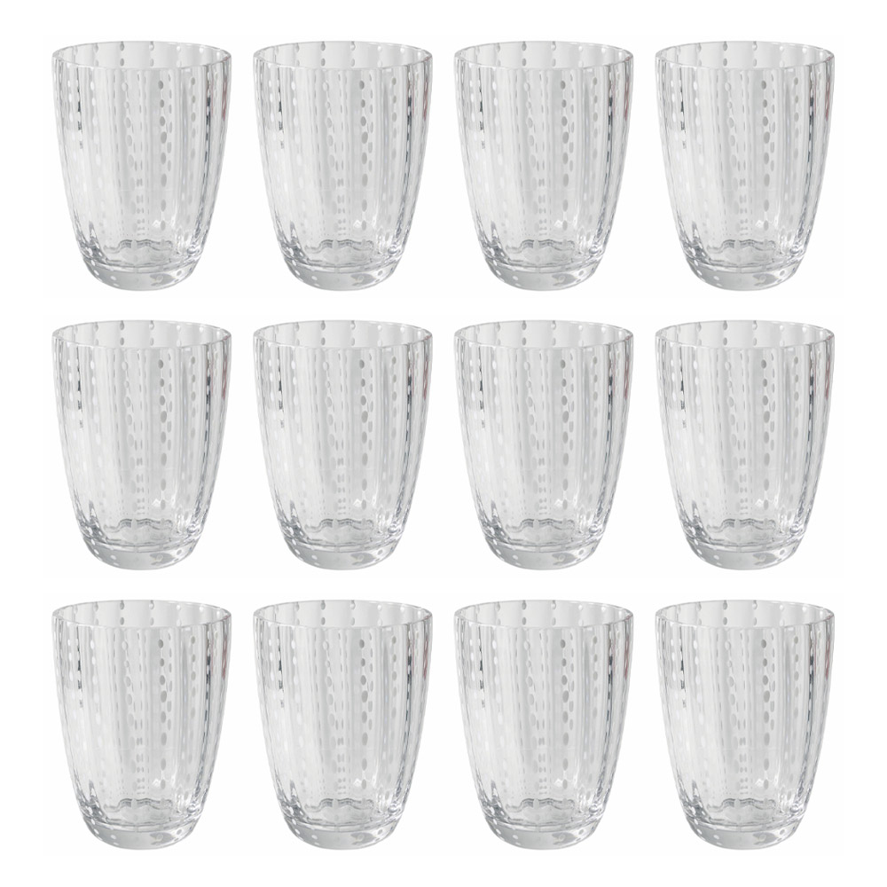 Glas til vand i farvet glas med hvide dekorationer 12 stk.