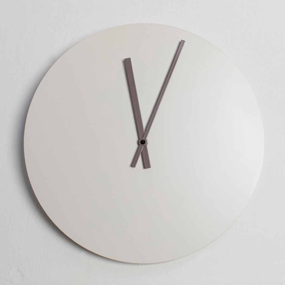Vægur i sand og kakao lakeret træ, med et moderne og rundt fremstillet i Italien design.