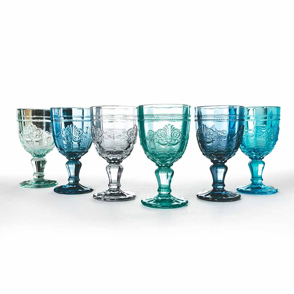 Farvede vinglas i glas med orientalsk dekoration, 12 stk.