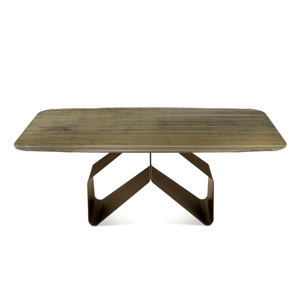 Et elegant, italienskproduceret designer-spisebord designet til stilfuldt at indrette din spisestue eller opholdsstue . Bordet skiller sig ud med sin originale , malede metalbase med en let og dynamisk grafisk struktur, der minder om to stiliserede vinger, hvilket skaber en stærk æstetisk effekt, samtidig med at det bevarer en god visuel balance.