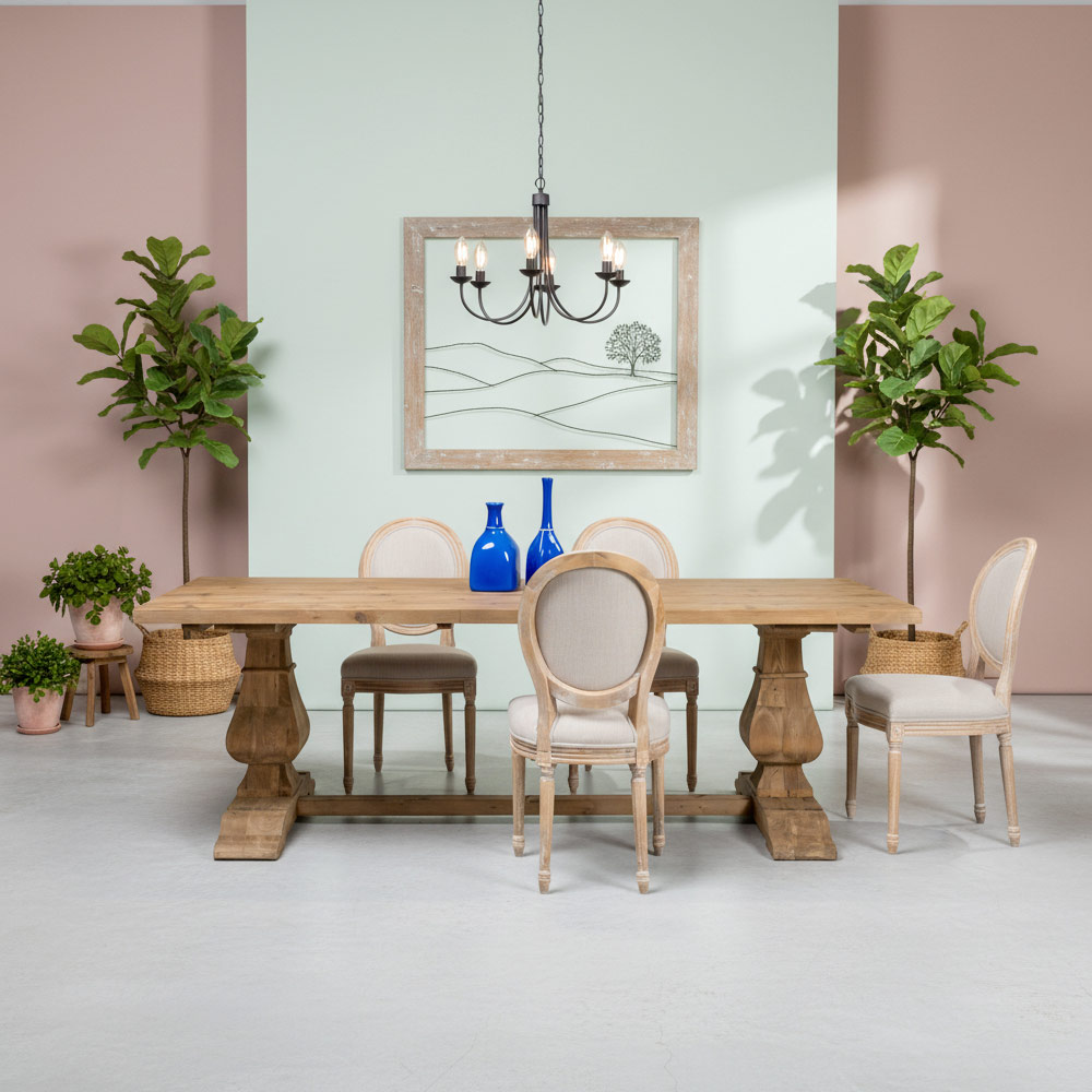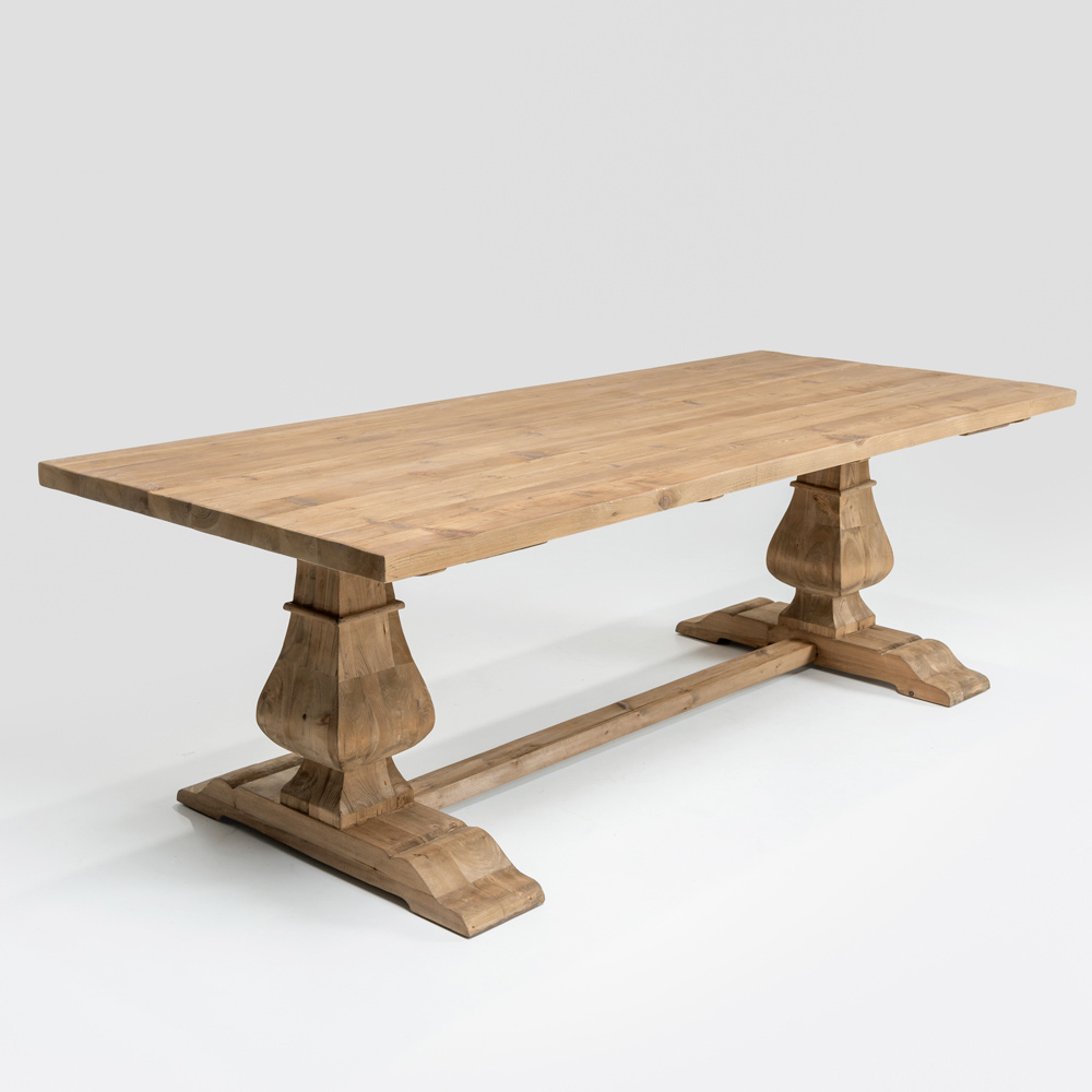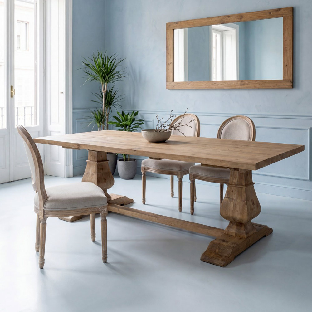 Dette bord i naturligt ældet fyrretræ har en autentisk og tidløs charme, ideelt til at forbedre store rum som spisestuer eller stuer. Den ældede finish fremhæver træets tekstur og fremhæver åretegning, knaster og ufuldkommenheder, der gør hvert bord unikt.