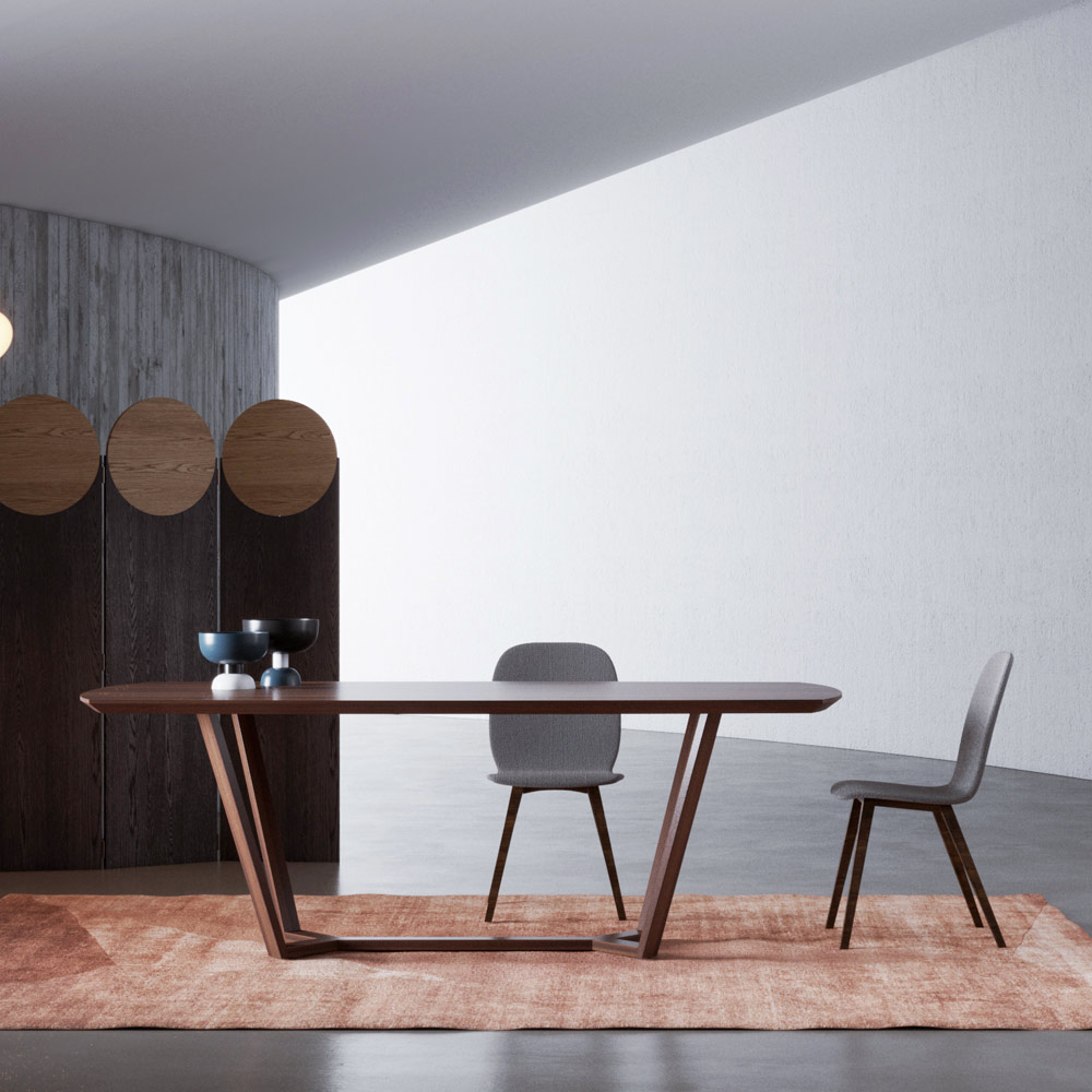 Bordet er formet af futuristiske former, som giver lys til essensen og giver det markante linjer og perspektiver. Materialernes robusthed udmønter sig i en kreativ impuls smedet af dygtige italienske hænder, der når nye kvalitative og æstetiske mål. Møbler bliver et middel til at opnå det ideelle personlige rum.