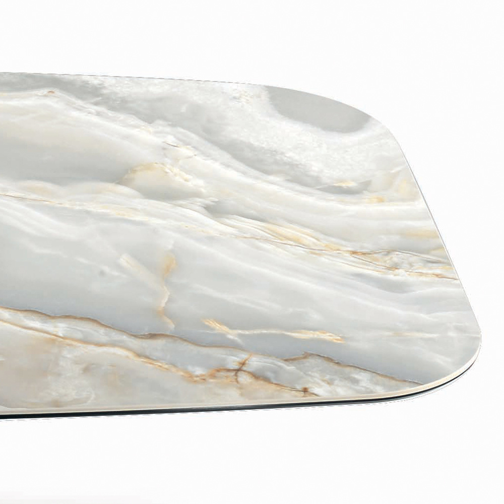 Tilgængelige finish:- poleret sølvonyx (tykkelse 10 mm glas + 6 mm keramik)