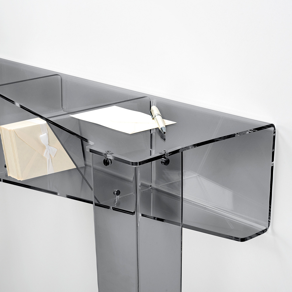 Fremstillet med 100 % højkvalitets PMMA fra virgin polymer , lover konsollen ikke kun styrke og holdbarhed , men også en glans og lysstyrke, der ikke falmer over tid. Som et ægte kunstværk fanger og reflekterer denne konsol lys og skaber en livlig og dynamisk atmosfære i ethvert rum.