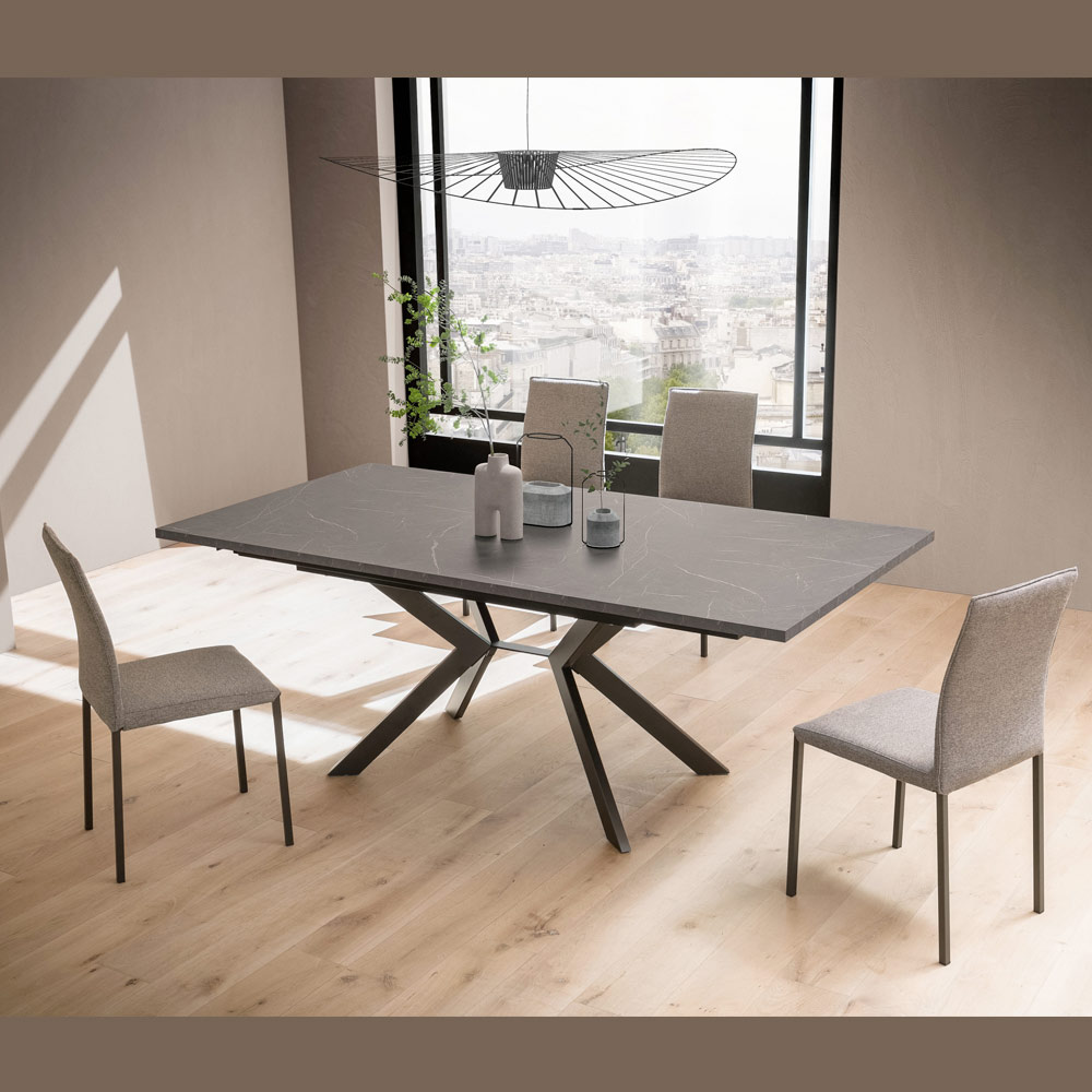 Basen, i malet metal og med et krydset geometrisk design, tilbyder stabilitet og et skulpturelt præg , der ikke går ubemærket hen. En perfekt indretningsløsning til spisestuer, åbne rum eller kontraktmiljøer med en raffineret stil.