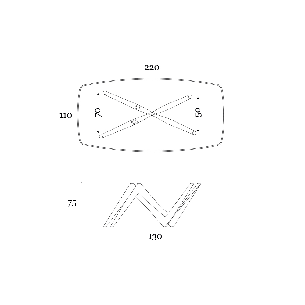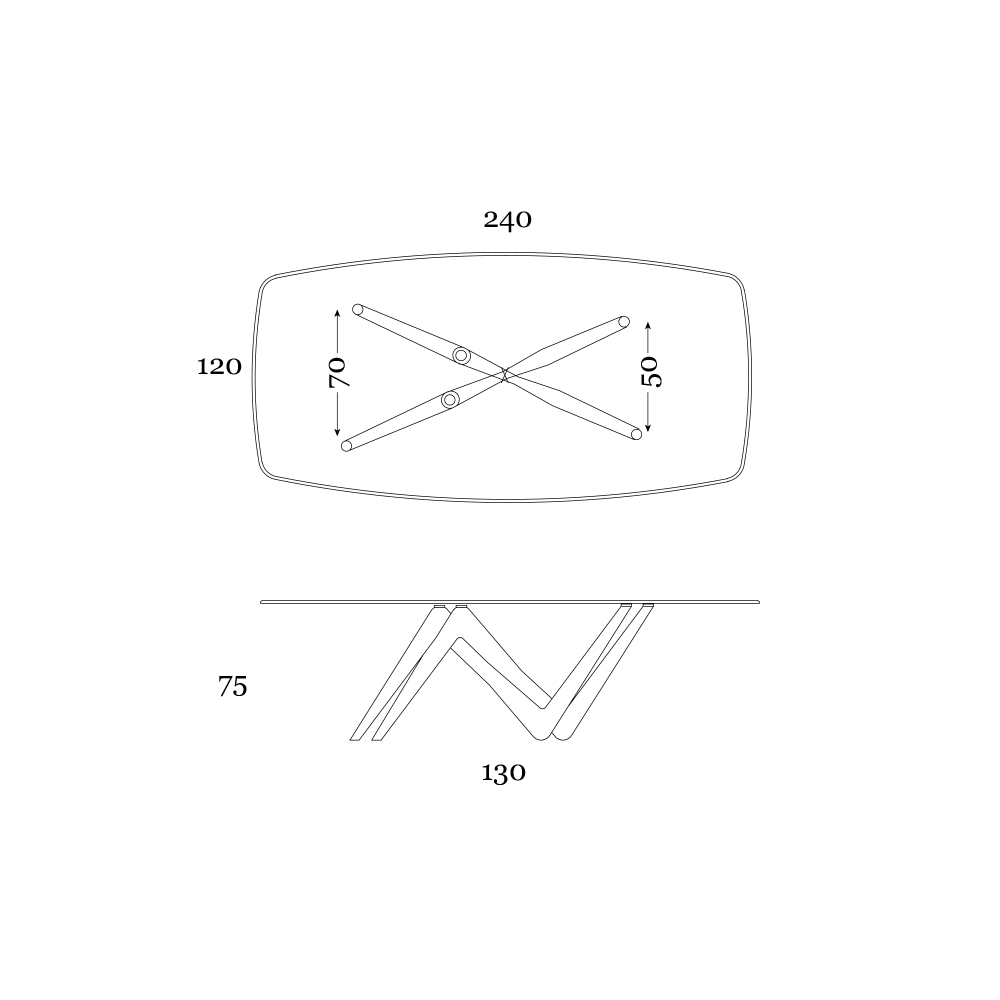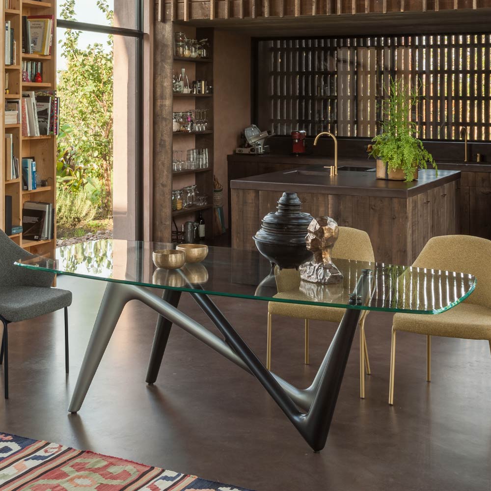 Made in Italy. Bordet i fast udgave er en alsidig løsning til forskellige indretningsstile. Med glaspladen kombineret med den malede bund er det med til at definere husets karakter. Fås i to forskellige topstørrelser for bedre at imødekomme pladsbehov. Bordstrukturen omfatter ben i malet stiv polyurethan, og den tøndeformede plade er lavet af ekstra klart transparent hærdet glas med en skrå kant, der giver mulighed for at vælge mellem et moderne og elegant look eller et mere traditionelt og robust.