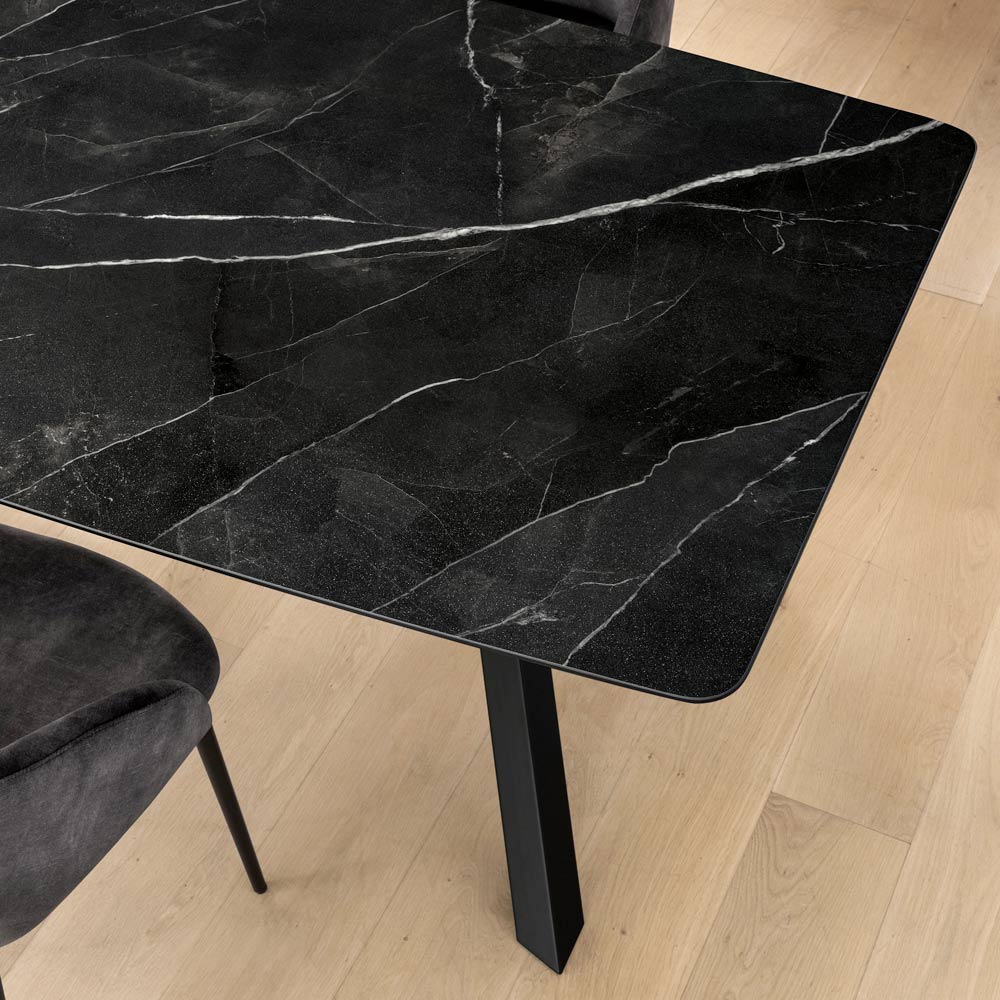 Bordpladen er lavet af Laminam , en keramisk overflade af den nyeste generation, der kombinerer æstetisk raffinement og teknisk ydeevne . Den er faktisk modstandsdygtig og ideel til daglig brug i køkkenet, spisestuen eller professionelle miljøer.