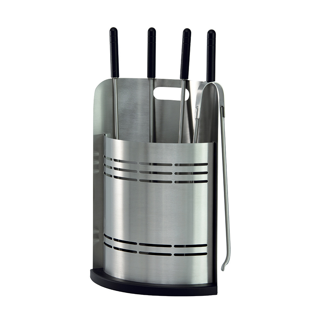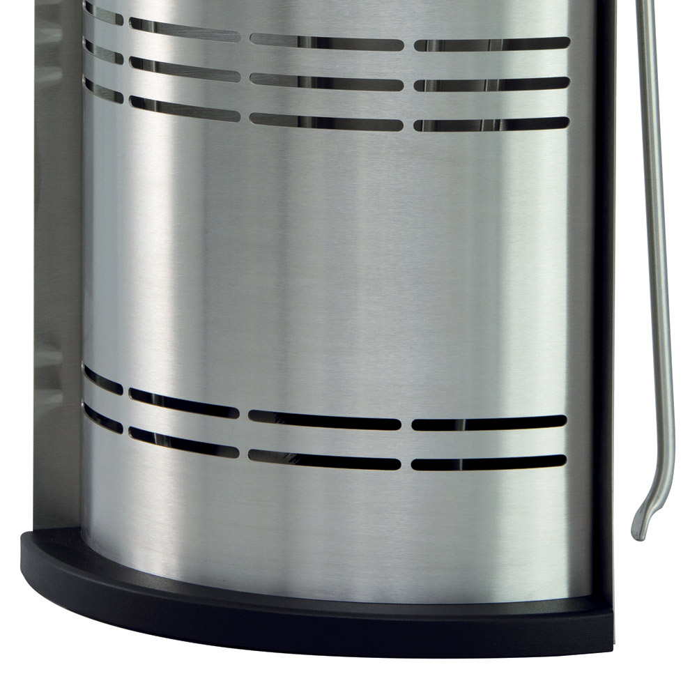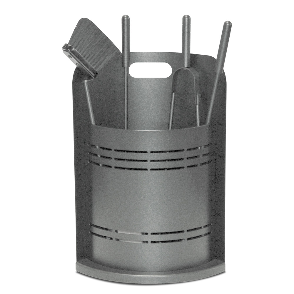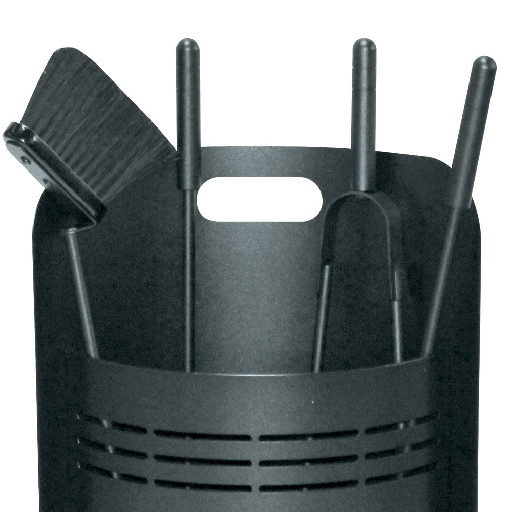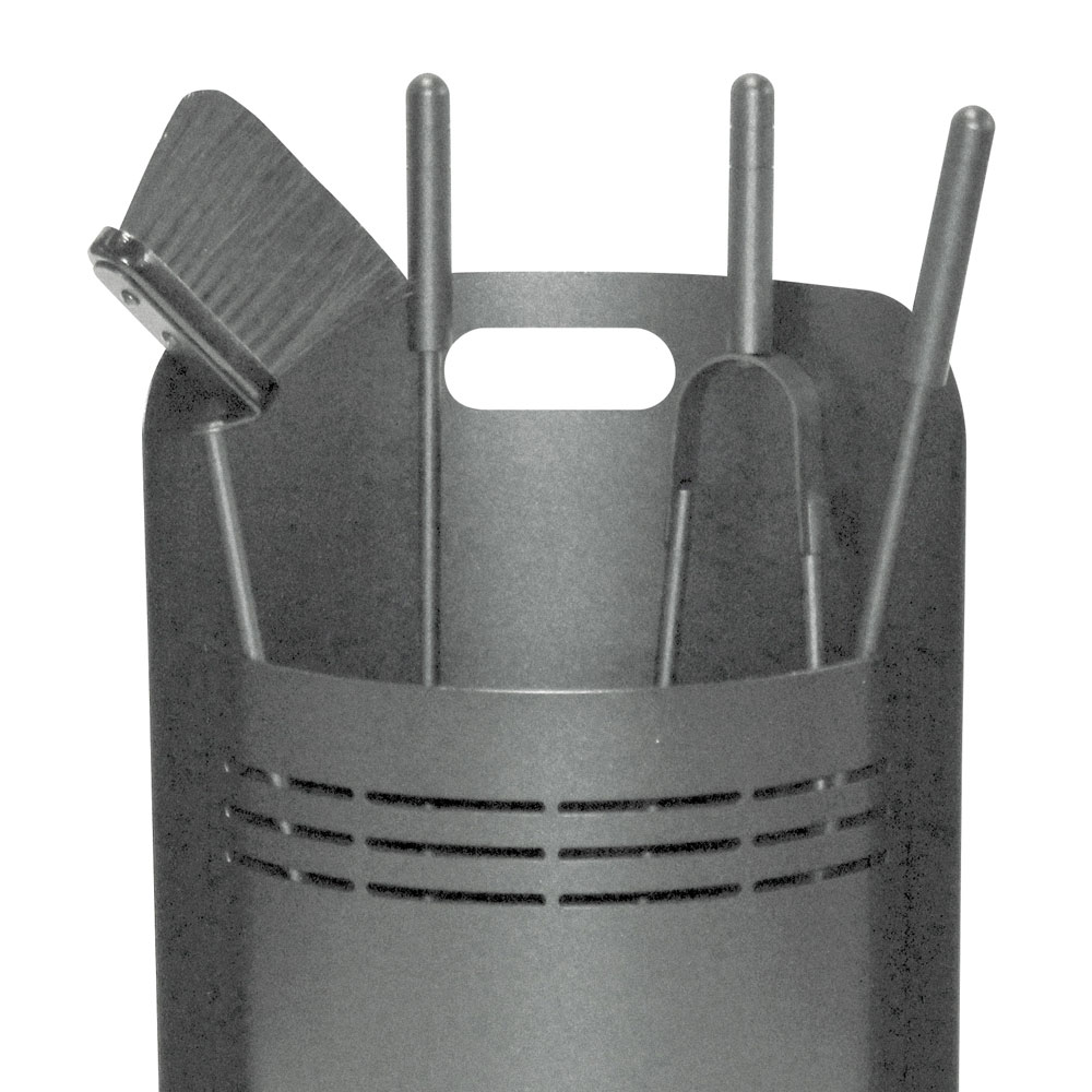 Denne pejsværktøjsholder er ideel til dem, der leder efter et strejf af moderne design . Dens cylindriske form er elegant og pladsbesparende, mens de vandrette slidser ikke kun skaber en iøjnefaldende visuel detalje, men sikrer også tilstrækkelig ventilation til gearet.