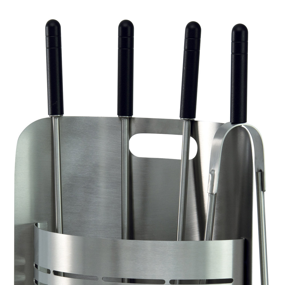 Sættet indeholder 4 tilbehør , alt essentielt for at vedligeholde ilden og rengøre pejsen. Tilstedeværelsen af et håndtag på toppen giver dig mulighed for nemt at løfte hele værktøjsholderen og flytte den, hvor det ønskes. Dens design er funktionelt, men forsømmer ikke æstetikken, med rene linjer og en solid struktur, der gør det til et holdbart og stilfuldt element i hjemmet.