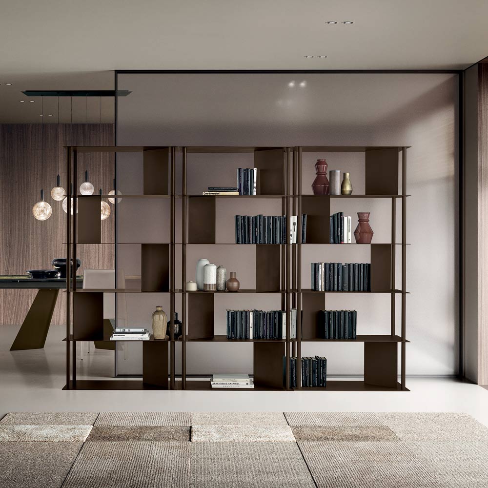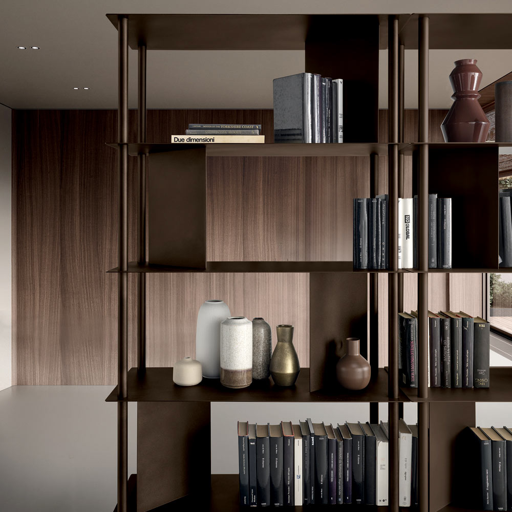 En elegant, italienskproduceret designerbogreol , ideel til stilfuld indretning af stuen , arbejdsværelset eller gangene. Dens moderne design skiller sig ud med sin lette, men arkitektoniske struktur, der forbedrer ethvert rum med balance og personlighed.