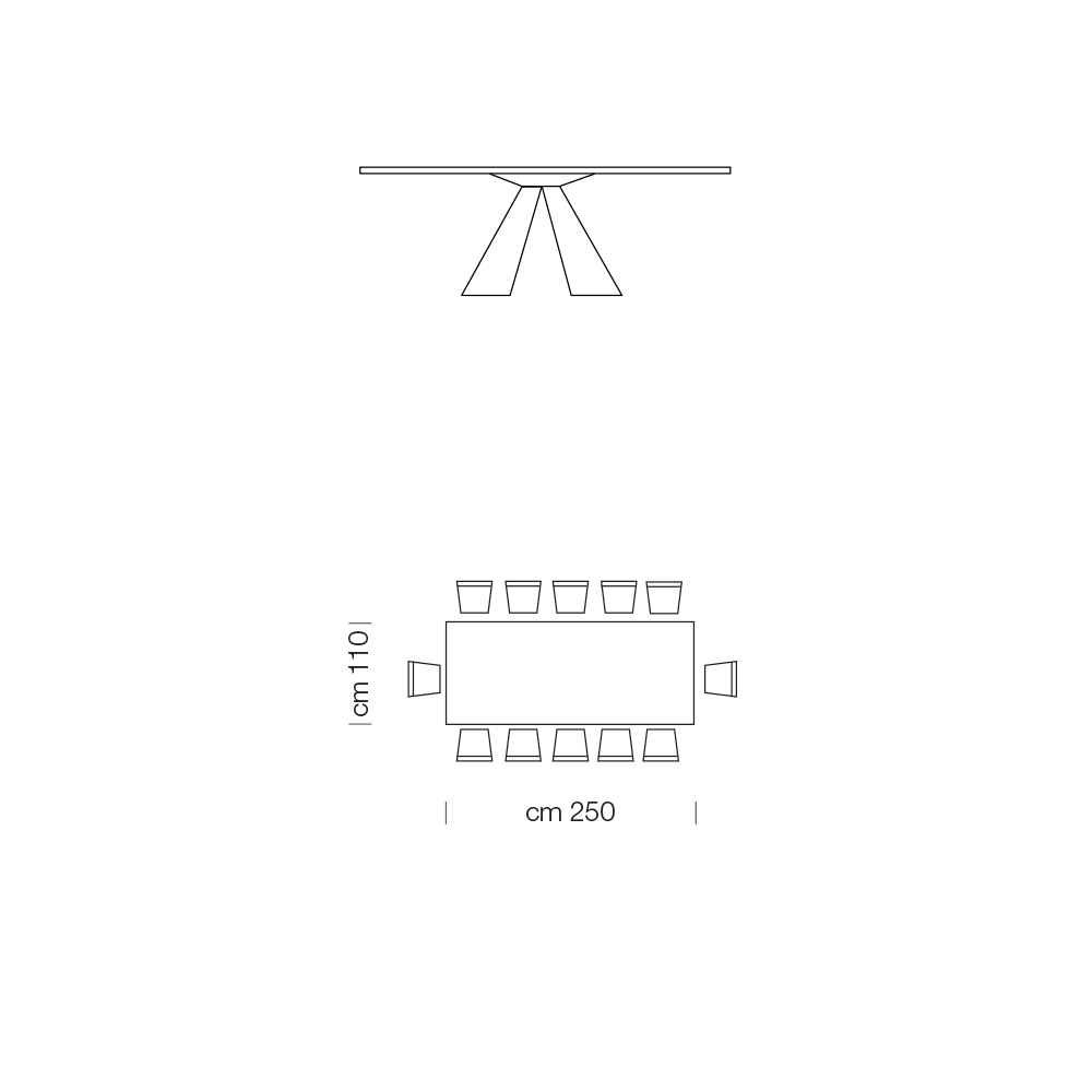 - L 250 x D 110 x H 75,5 cm (12 sæder).