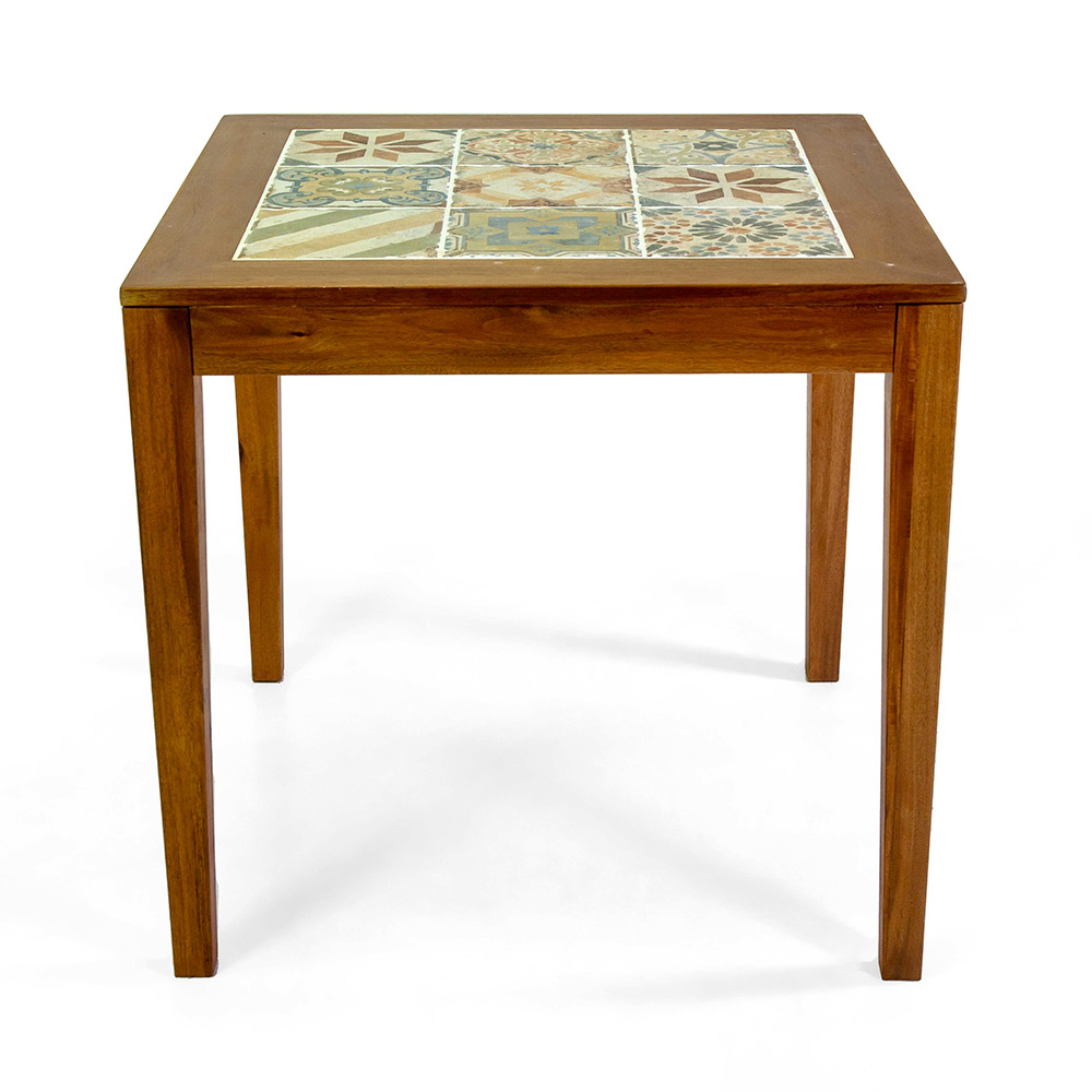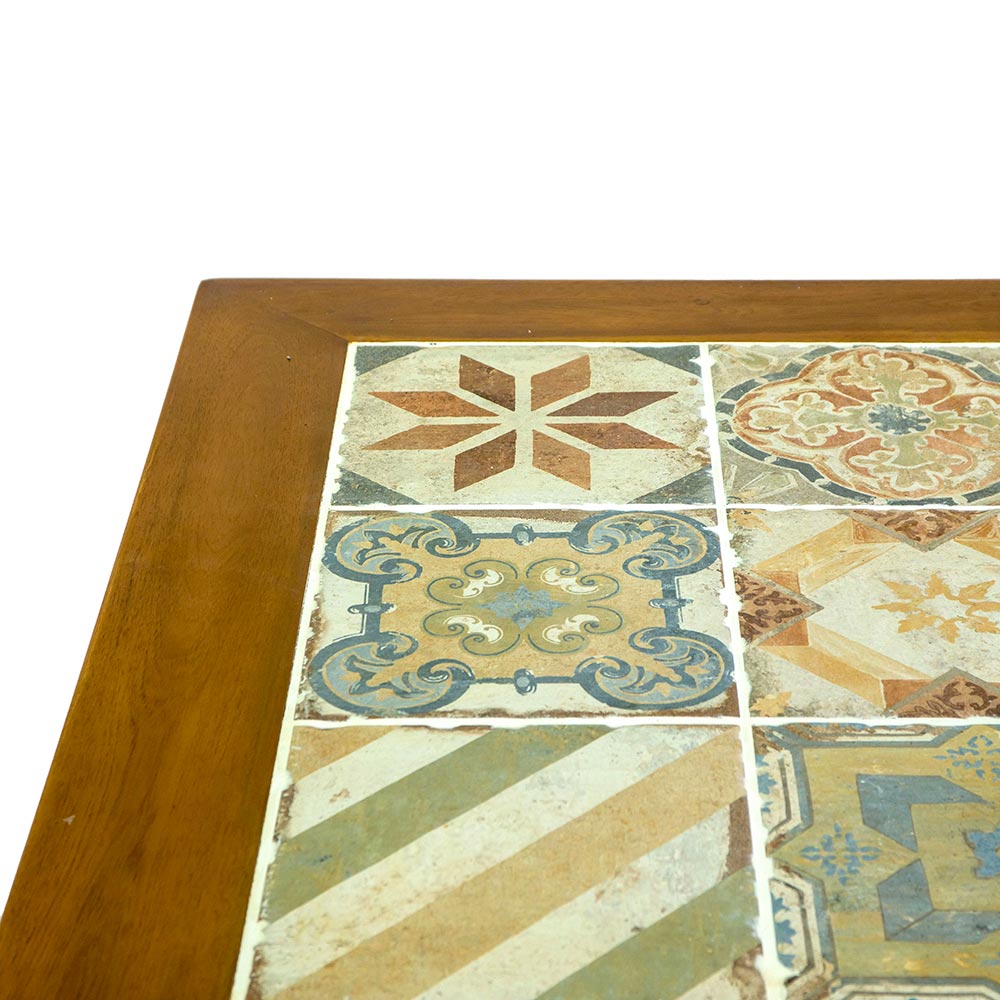 Oplev spisebordet, der kombinerer rustik elegance og traditionel kunst i ét eksklusivt møbel. Dette smukke bord har en dekoreret keramikplade, der er harmonisk placeret i en massiv træstruktur. Hver flise er nøje udvalgt til at skabe en mosaik, der minder om håndværkstraditioner, hvilket gør det til et unikt og fascinerende møbel.