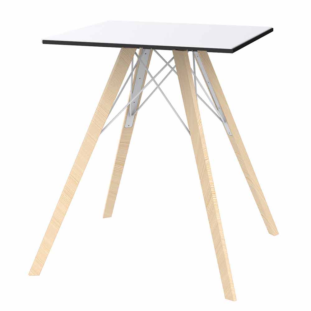Firkantet spisebord i asketræ og hvid eller sort hpl top og 3 størrelser, 4 stk.