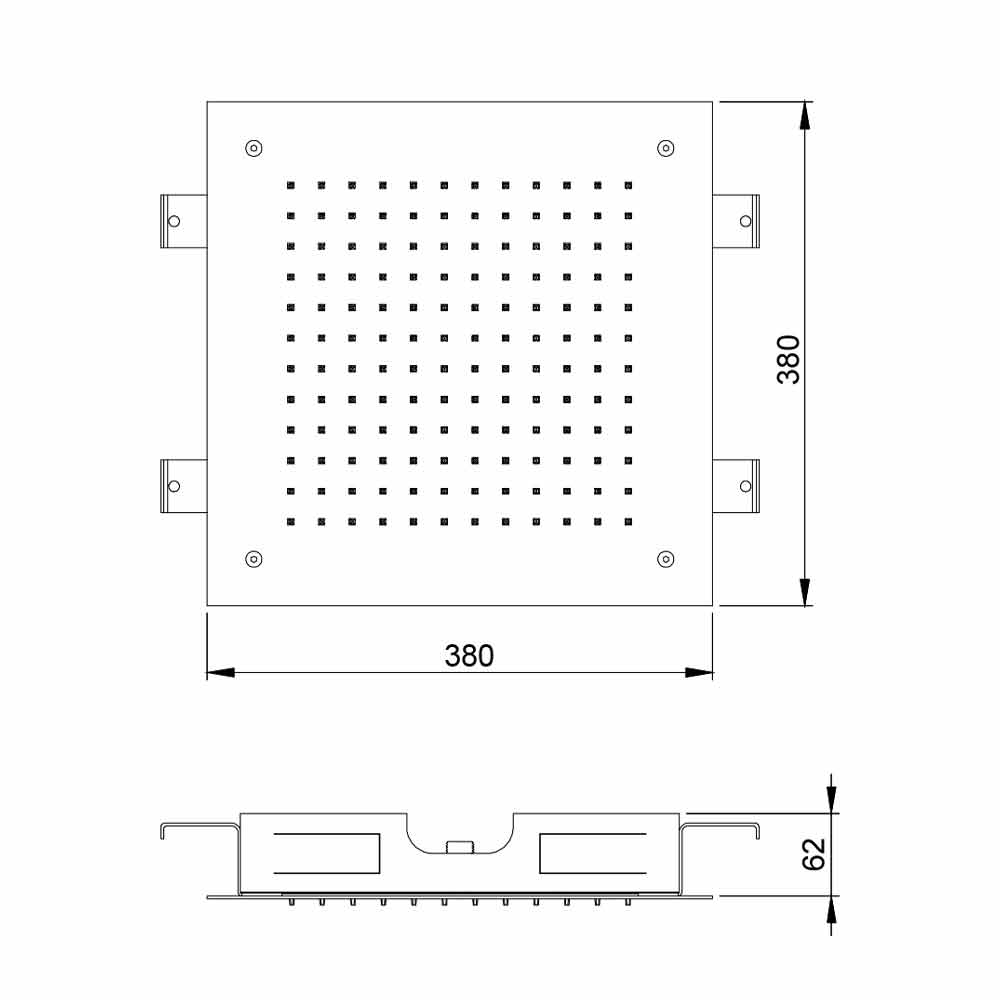 Egenskaber:- Firkantet brusehoved i anti-kalksten rustfrit stål