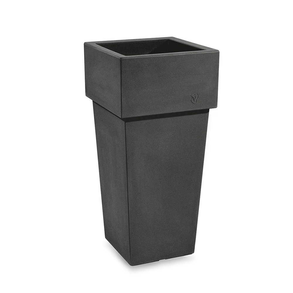 Denne udendørs vase lavet i Italien i polyethylen er et møbeltilbehør med en stærk moderne personlighed . Den stærke og tilsyneladende klassiske form afsluttes i toppen af forstærkede kanter , som giver kompakthed til produktet uden at overskygge det elegante udseende, der kommer af det.