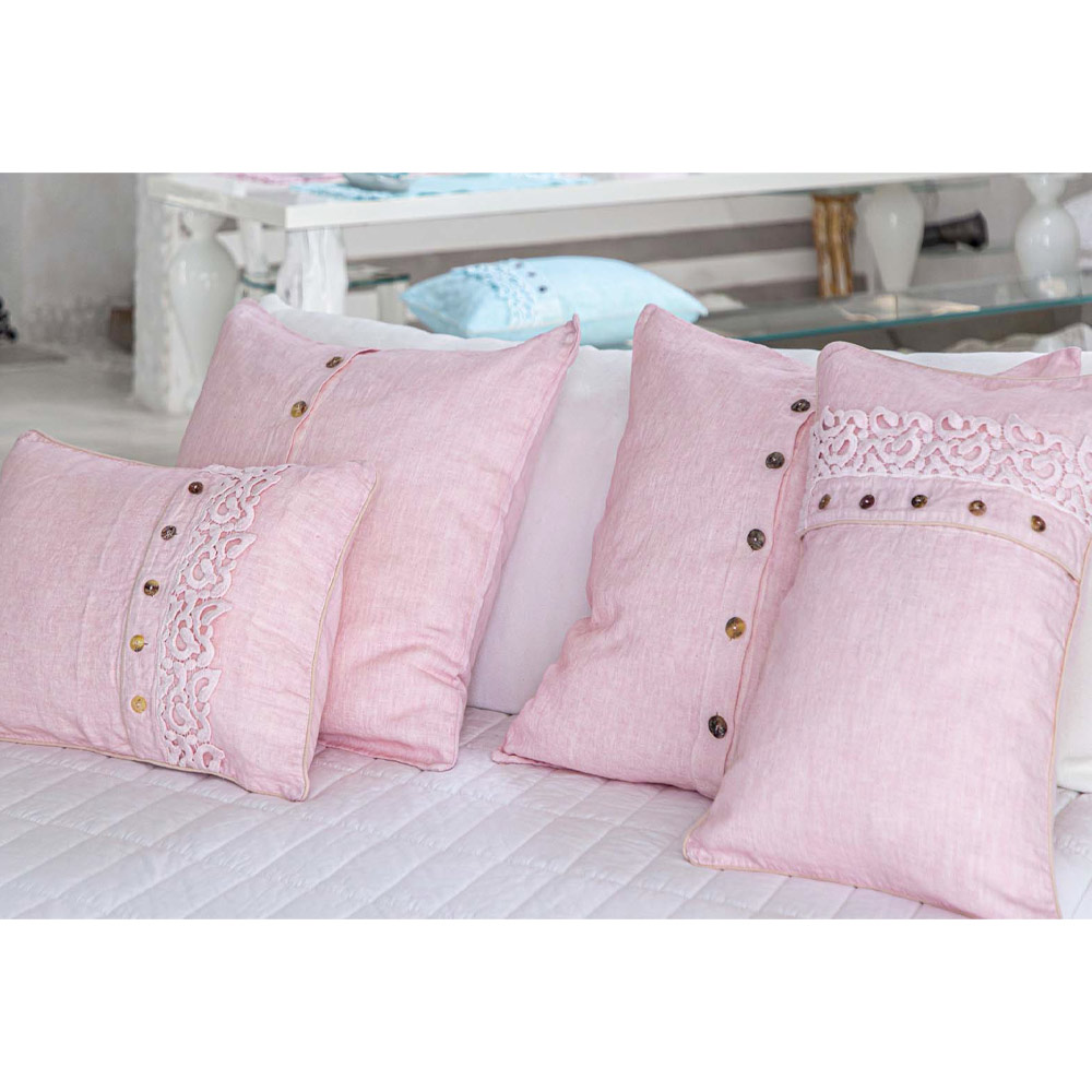Traditionens værdi slutter sig til den moderne livsstil med denne tunge pudebetræk i linned med central lukning med Agoya-knapper i perlemor til dekorative hynder med et firkantet design.