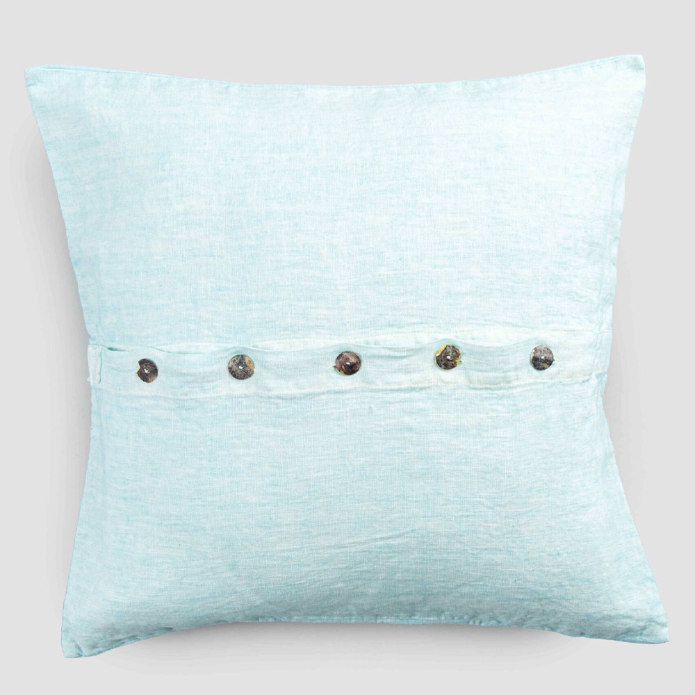 Firkantet pudebetræk i farvet linned med Agoya-knapper i perlemor - Middelhavet