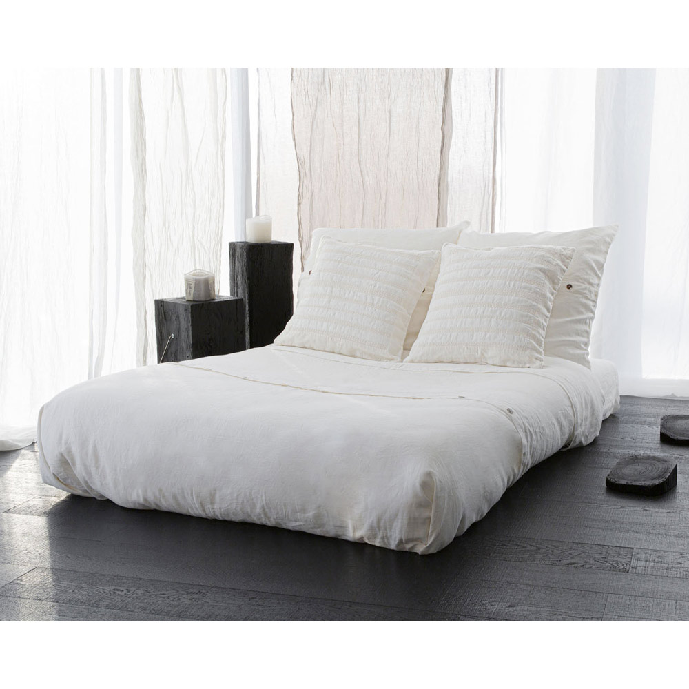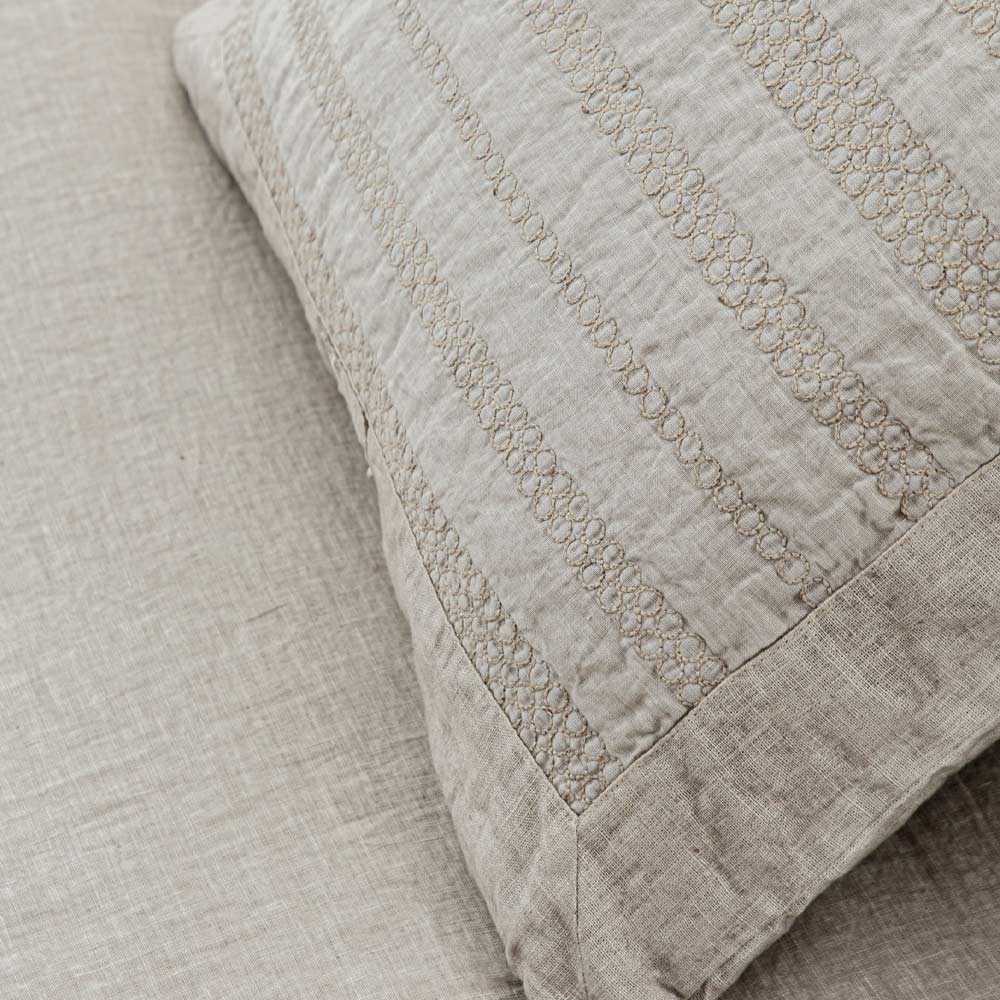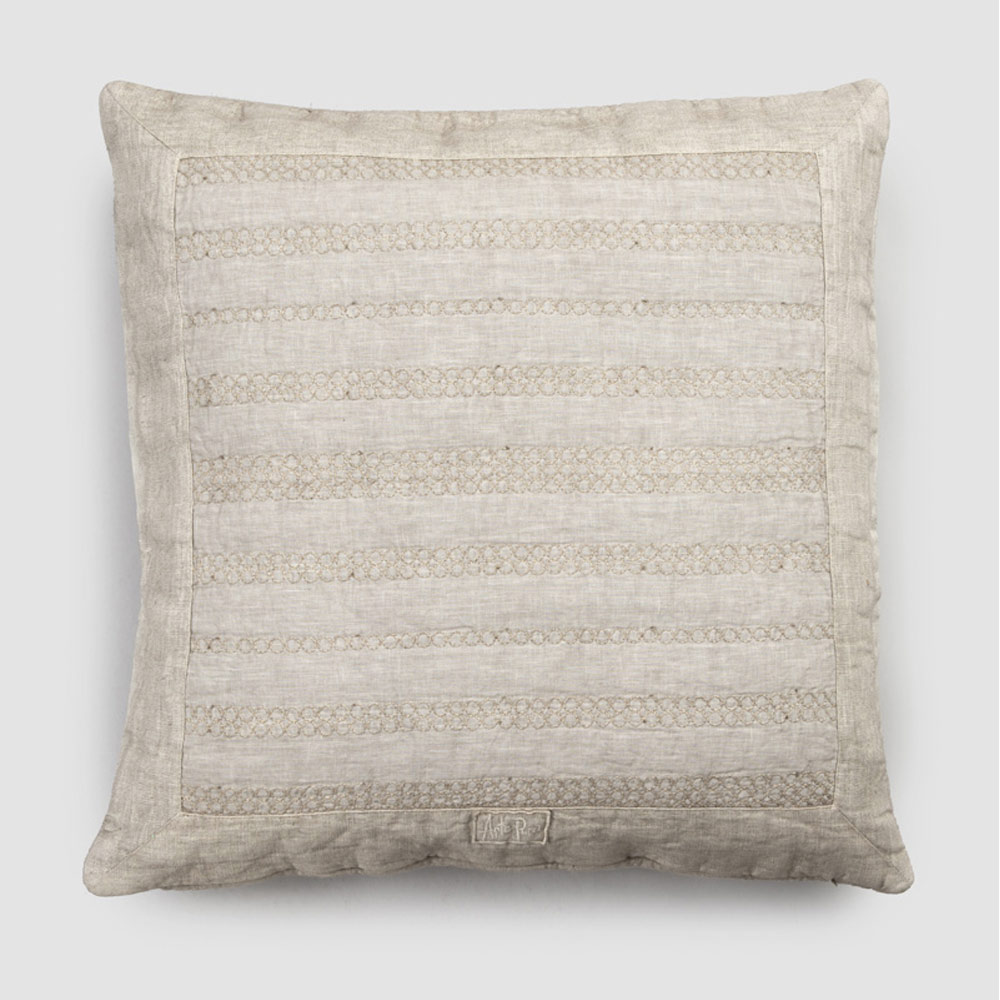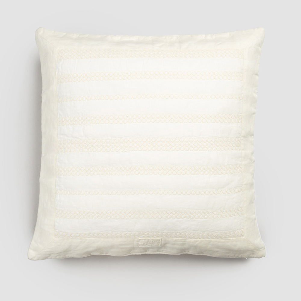 Firkantet pudebetræk i linned med broderi i 2 overflader og fremstillet i Italien.