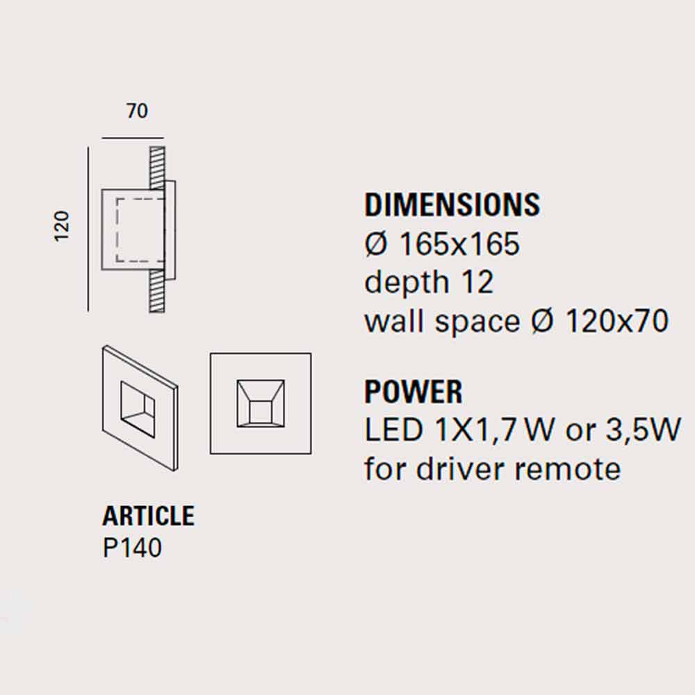 - lumen 140 1 x 1,7W, IP 65, 4100K vinkel 45 °;