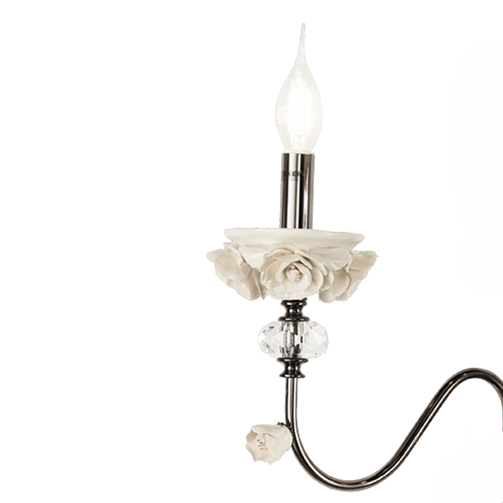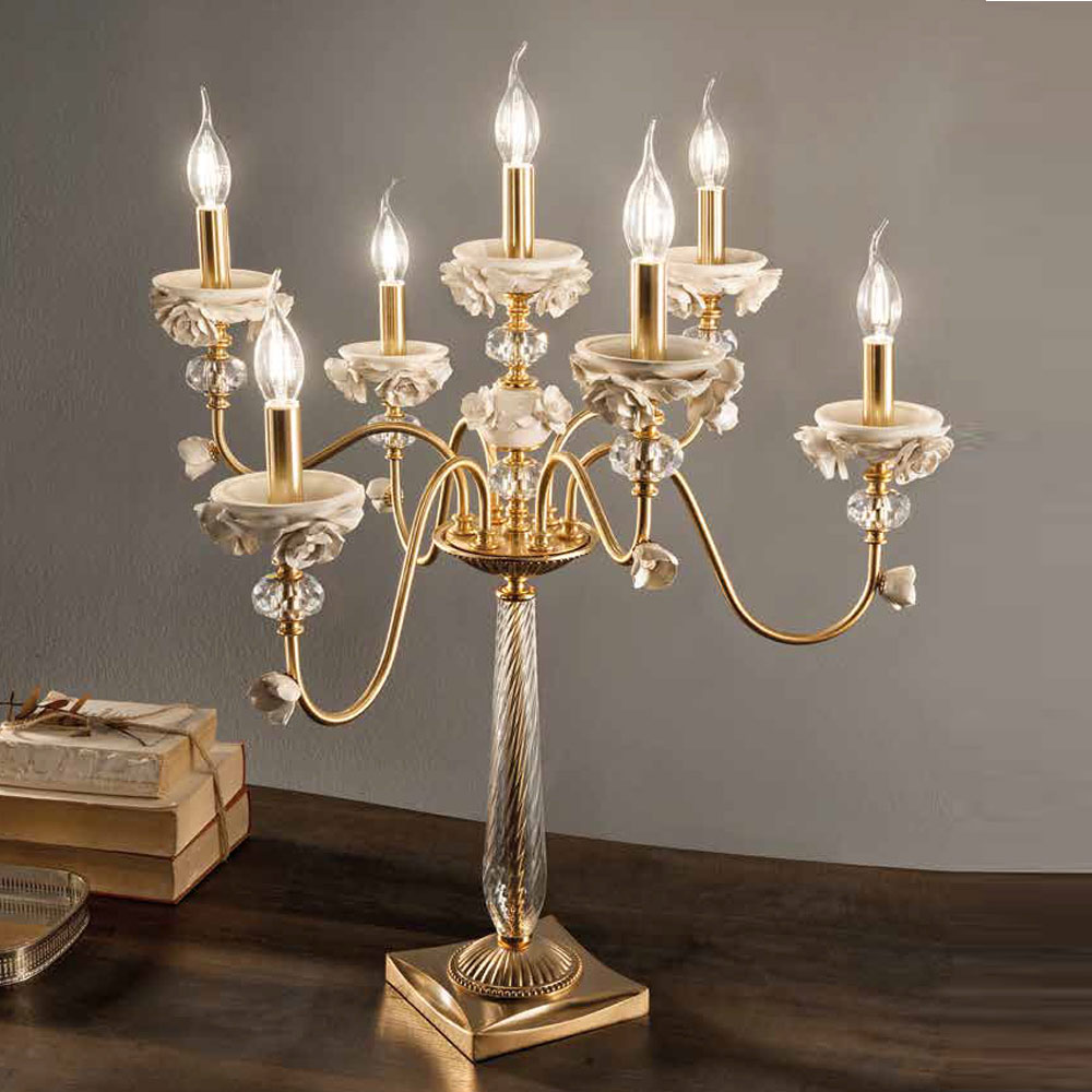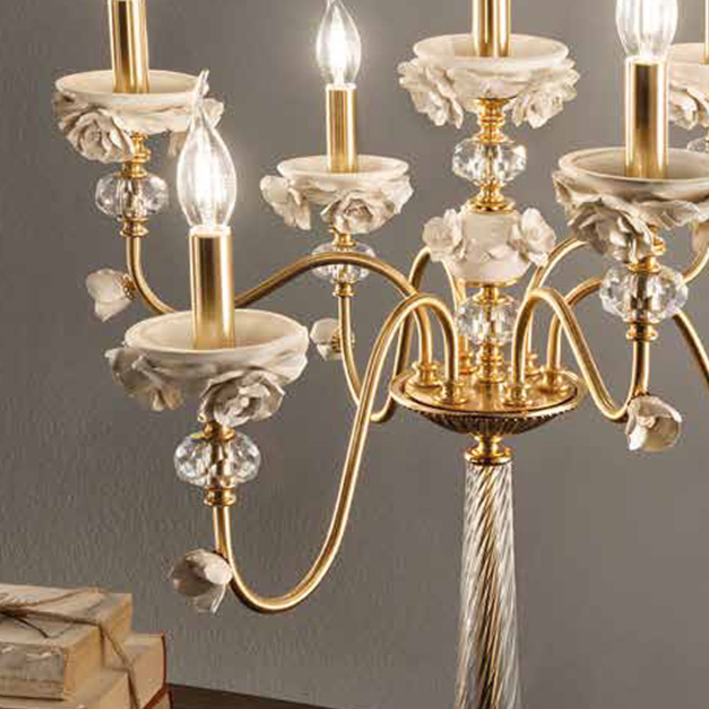 7 lys flambeaux lampe i porcelæn og blæst glas, luksus fremstillet i Italien.