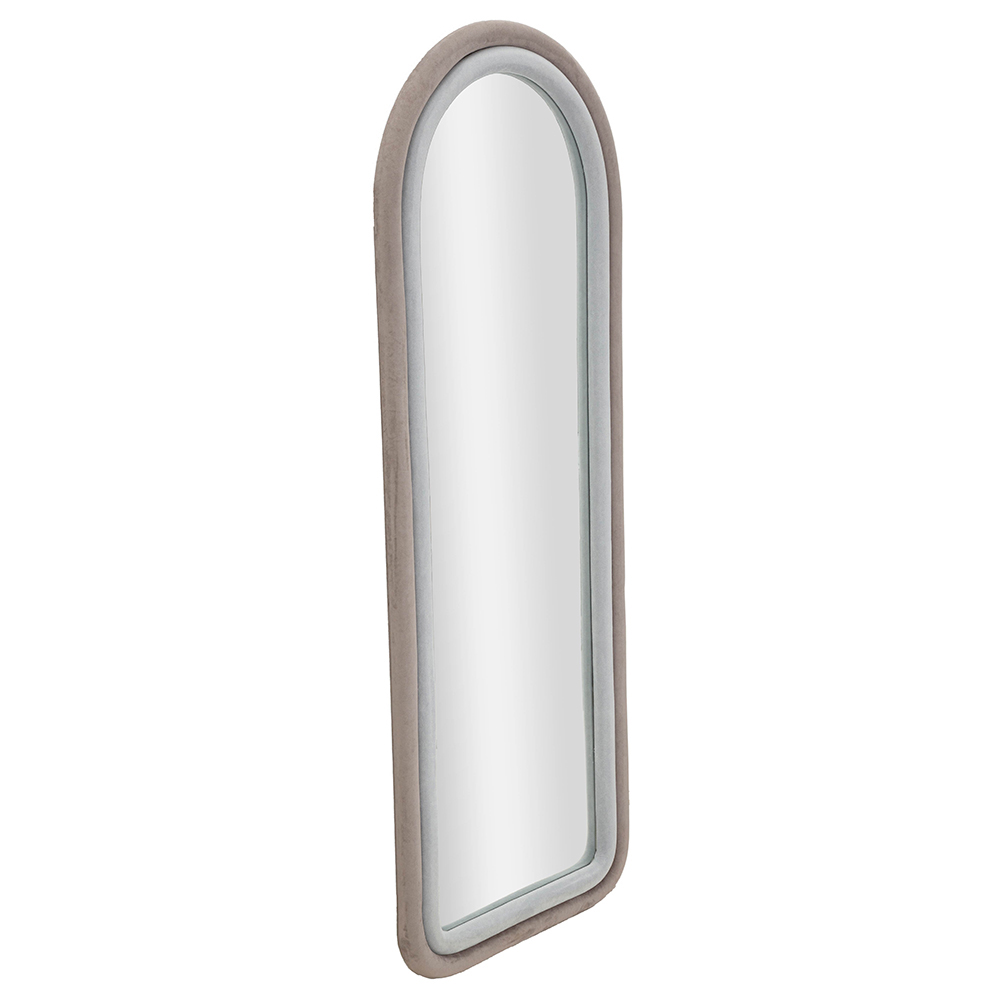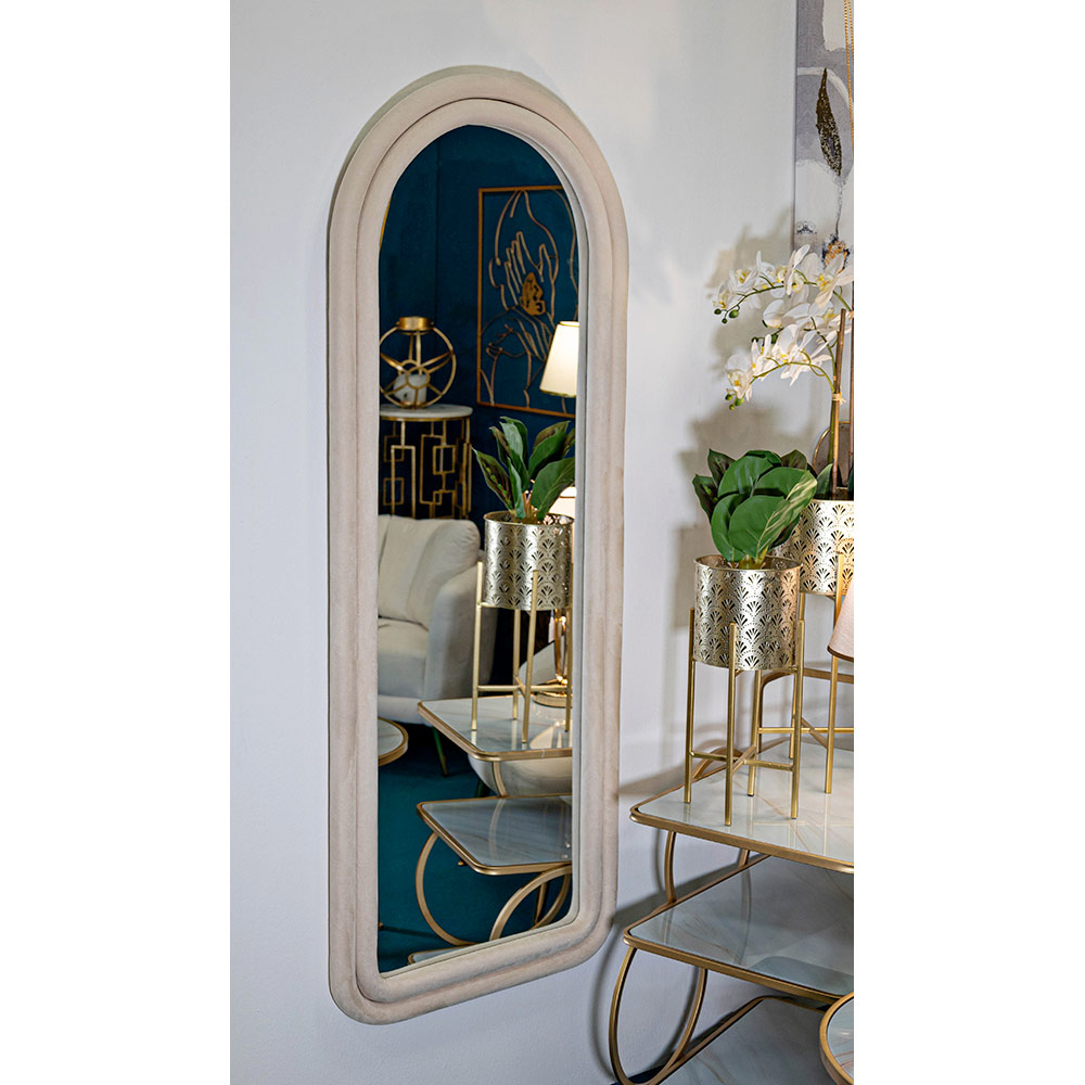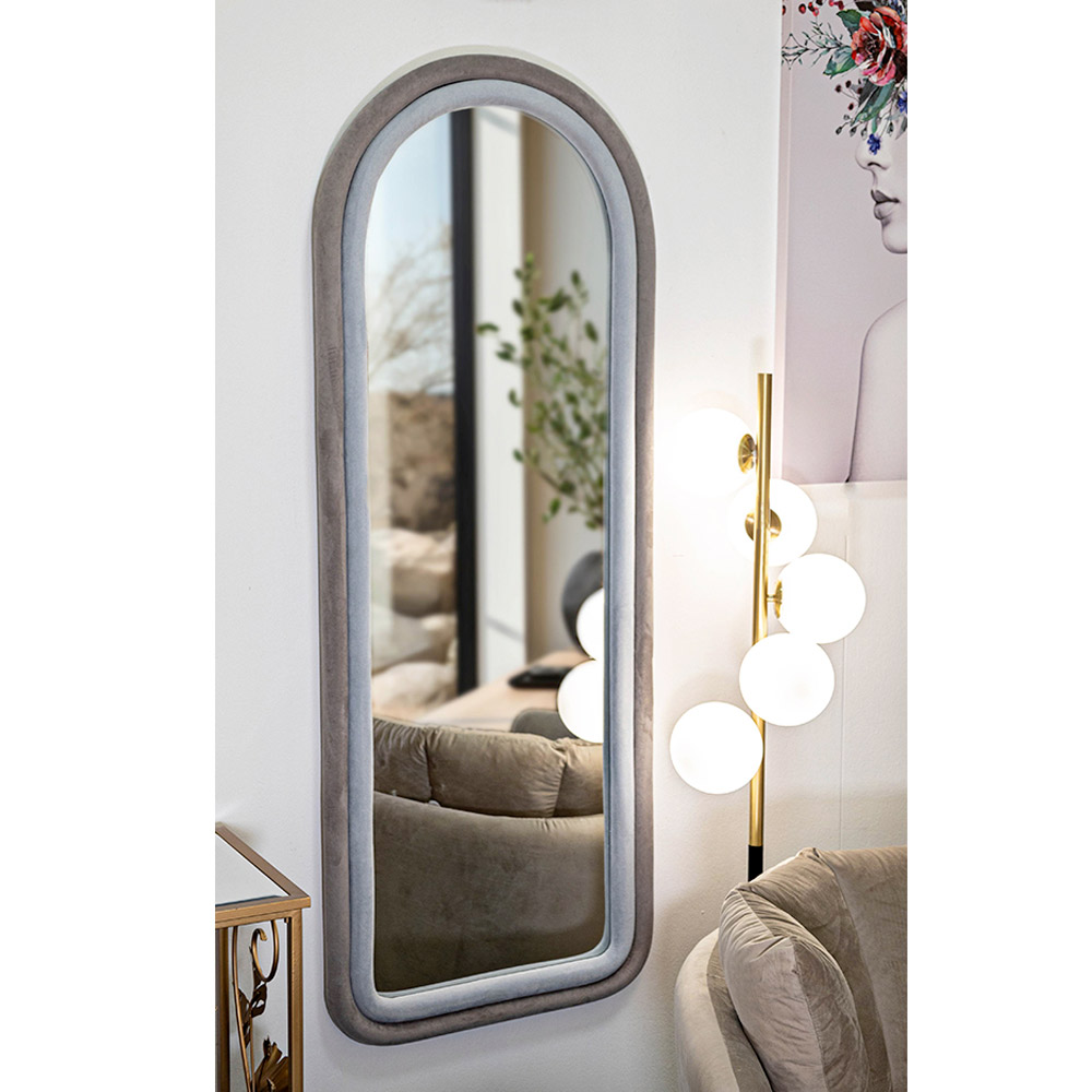 Dette indrammede spejl inkarnerer essensen af moderne sofistikering og gør et statement som et midtpunkt i ethvert rum. Rammen, med bløde og omsluttende kurver , har et design, der minder om gamle ogivalvinduer, hvilket bringer en smag af klassisk elegance med sig, nyfortolket i en moderne toneart. Rammens finish blander sig harmonisk med ethvert miljø og skaber en kontrast af farver, der er ren fornøjelse for øjnene.