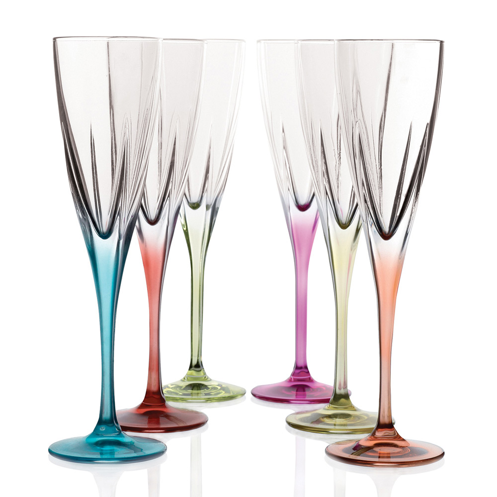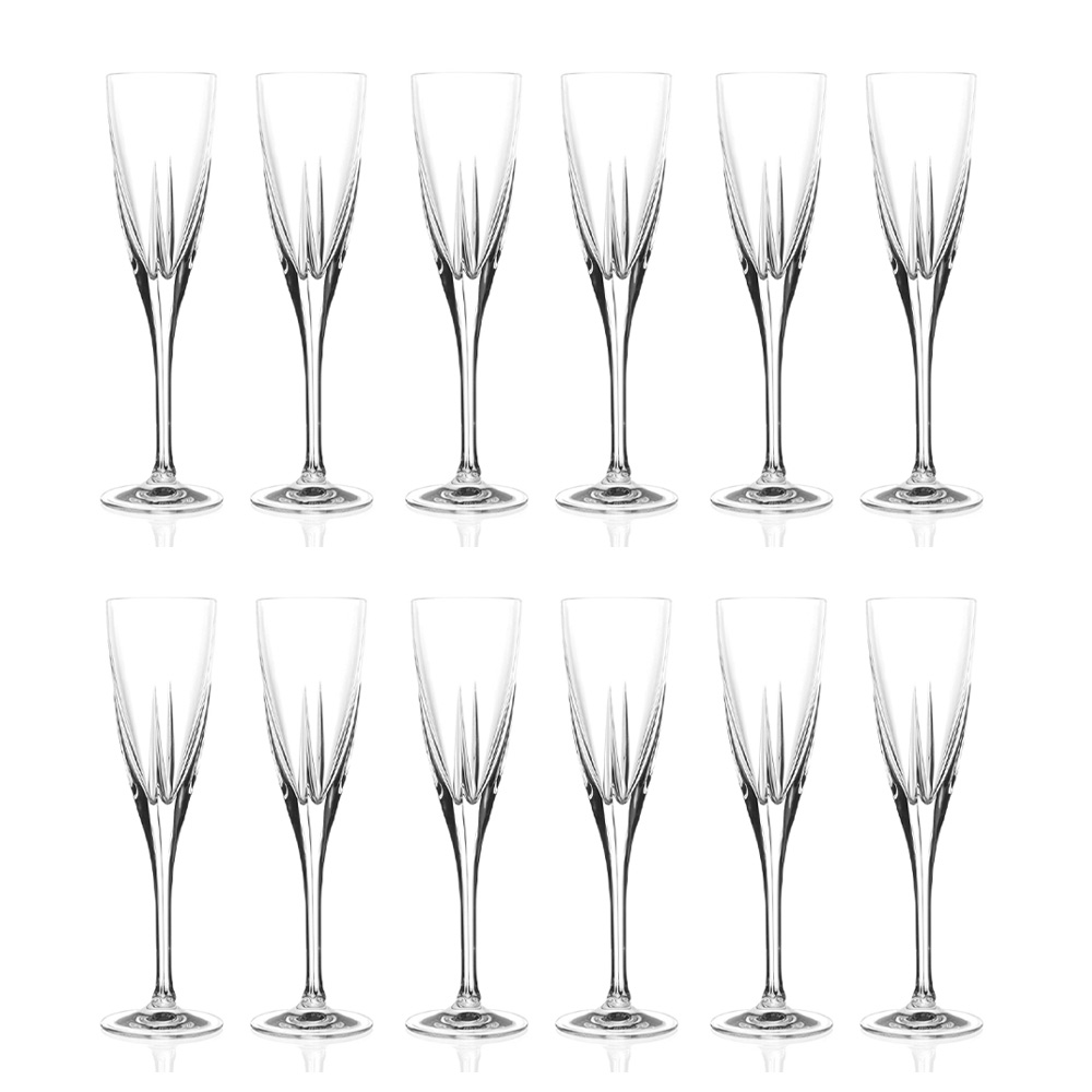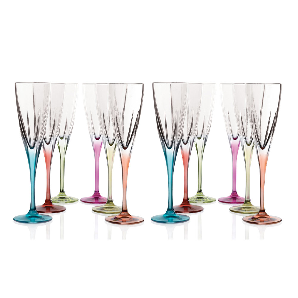 Sæt med fløjteglas i gennemsigtig eller farvet øko -krystal, 12 stykker fremstillet i Italien.
