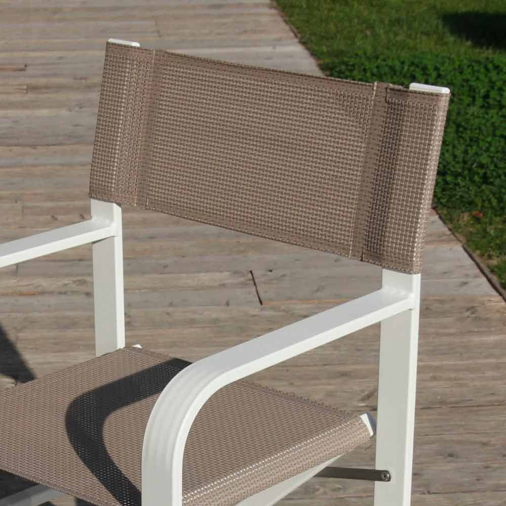Udendørs stol med struktur i pulverlakeret aluminium og sæde i kontinuerlig tråd af polyester beklædt med pvc, fremstillet i Italien . En indretningsløsning til udendørs miljøer, der er ideel til dem, der elsker praktisk og funktionalitet, elementer fra det komfortable og indbydende sæde og den sammenklappelige struktur, der giver dig mulighed for let at lukke stolen for en minimal størrelse . Takket være sit moderne og essentielle design tilpasser det sig perfekt til de mest forskellige sammenhænge og bringer al sin ædru og eklektiske personlighed med sig . De forskellige overflader, der fås, giver det også en særlig alsidig karakter, der klarer at imødekomme enhver anmodning og behov på den bedst mulige måde. De høje kvalitetsmaterialer brugt sammen med 100% Made in Italy-håndværket giver liv til et let og ekstremt robust sæde, der er ideelt til udendørs møbler i barer, haver, men også strande og swimmingpools.