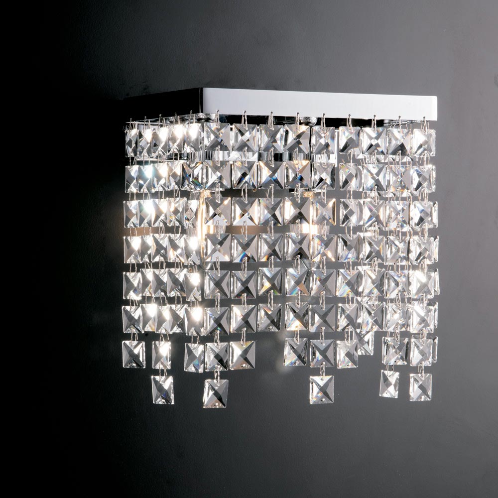 Udformet med en metalstruktur og beriget med transparente dekorative elementer, spreder den lyset og skaber raffinerede refleksionsspil, der skaber en indbydende og raffineret atmosfære.