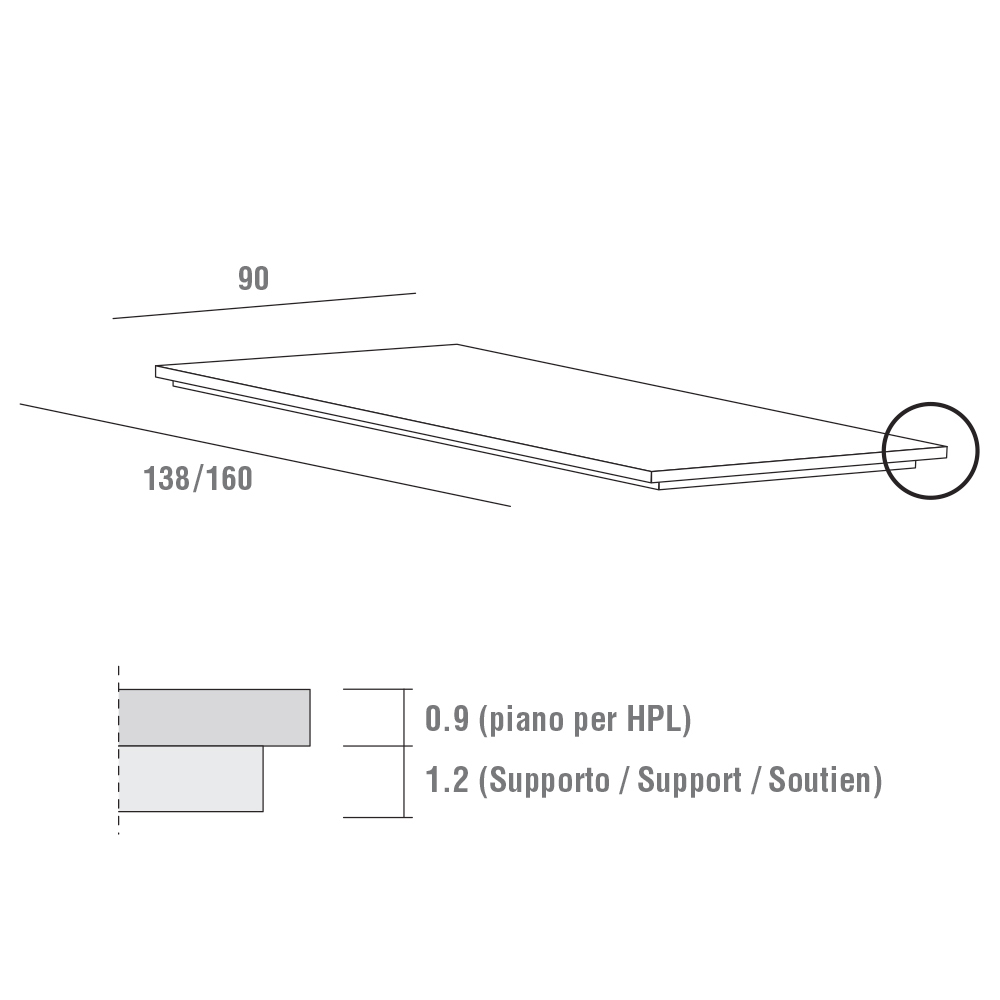 NB : Bordpladen og bunden fås i en lang række forskellige finish. Kontinuiteten af kornet mellem toppen og forlængelsen er ikke garanteret