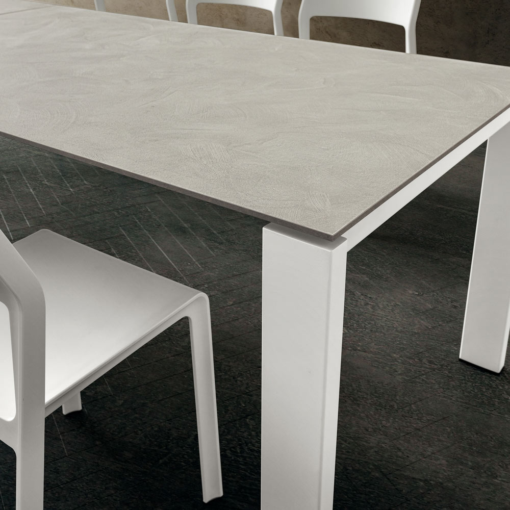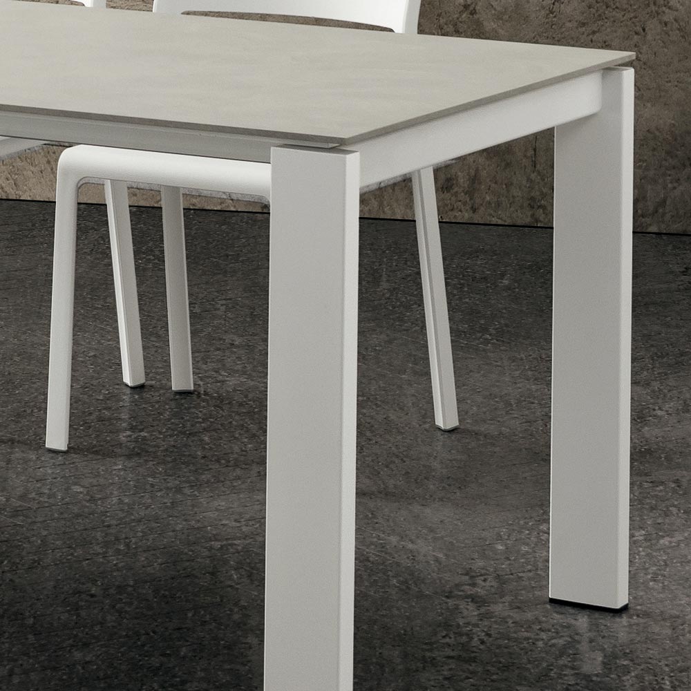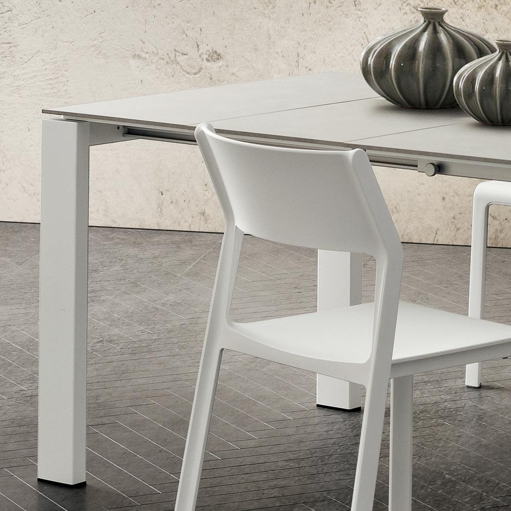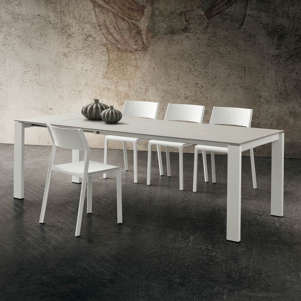 Udtrækkeligt spisebord i høj kvalitet Made in Italy hpl og hvidlakeret metal.