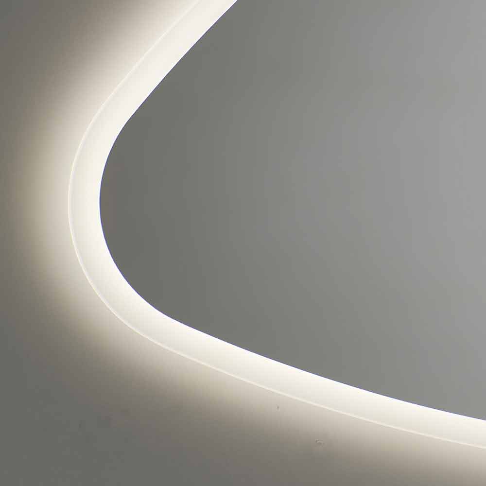 elegante linjer hjælper det med at skabe en følelse af harmoni og bevægelse i rummet, der ikke går ubemærket hen. Tilstedeværelsen af LED-baggrundsbelysning øger dens