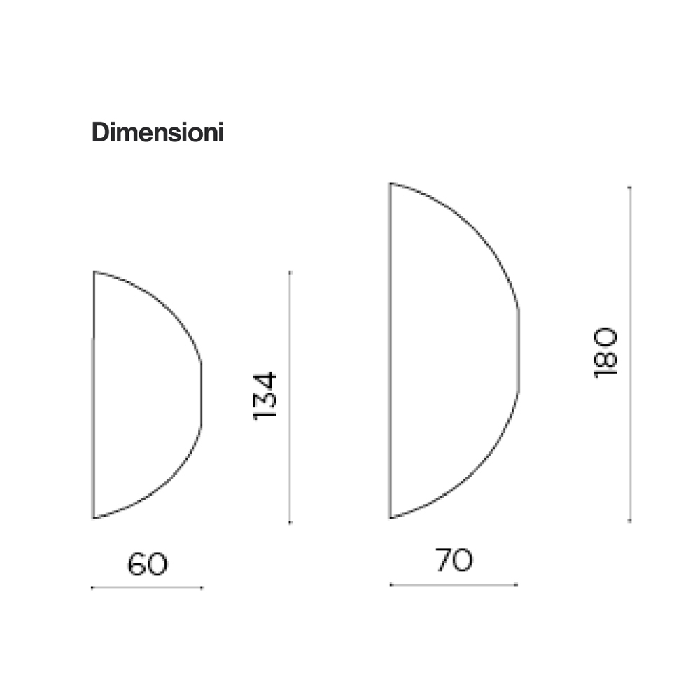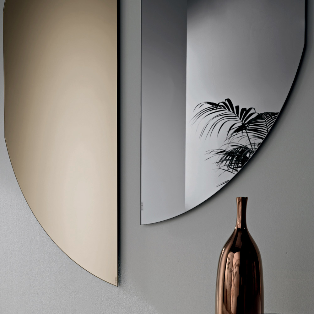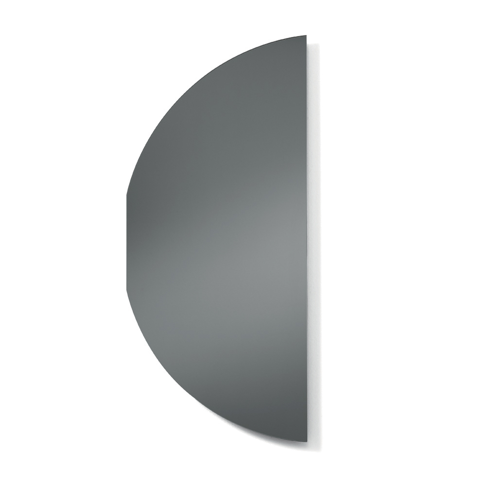 Spejlet har en kontureret form, der minder om en halvcirkel med en afbrudt kurve , hvilket skaber en original og harmonisk silhuet. Denne essentielle geometri giver spejlet en stærk visuel tilstedeværelse, samtidig med at det bevarer en minimalistisk og raffineret æstetik.