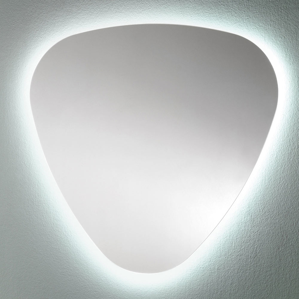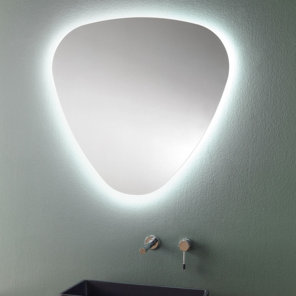 Poleret kantformet spejl på badeværelset med LED-baggrundsbelysning, høj kvalitet fremstillet i Italien.