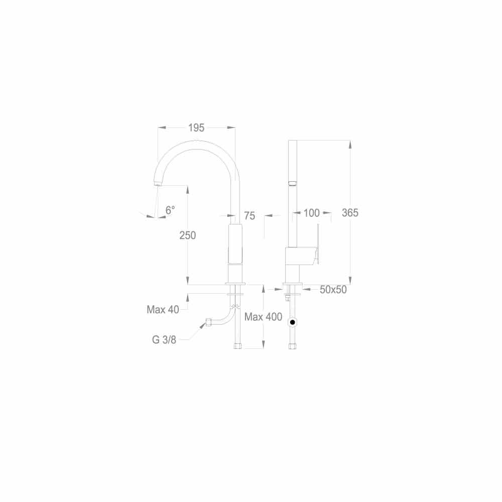 Helt produceret i Italien med materialer af høj kvalitet, der overholder europæiske standarder. Denne mixer kan installeres på toppen med en drejelig tud; udstyret med belufter, fleksible forbindelser, keramisk skivepatron og har indbygget det energibesparende system til vandbesparelse.