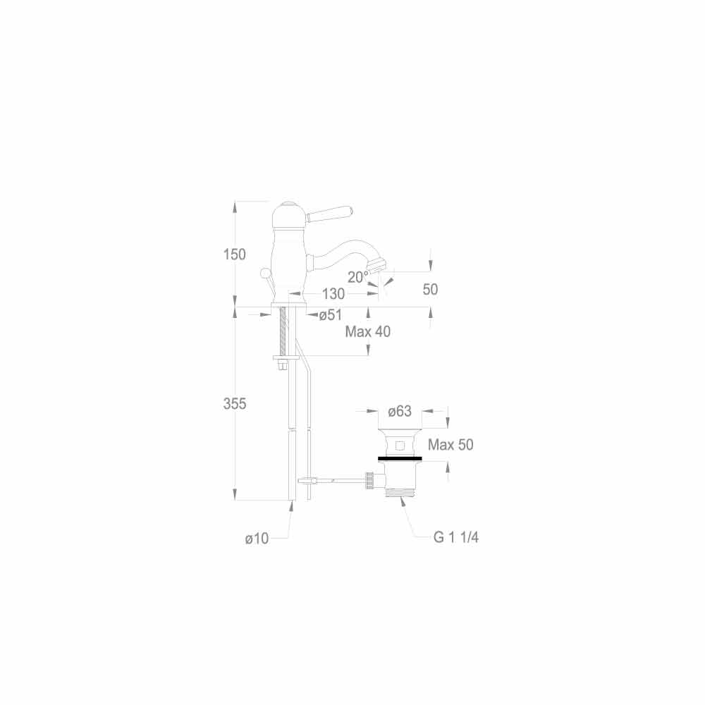 køkkenbordarmatur 150 mm høj og med en 130 mm centerafstand med afløb og pop-up affald. Helt