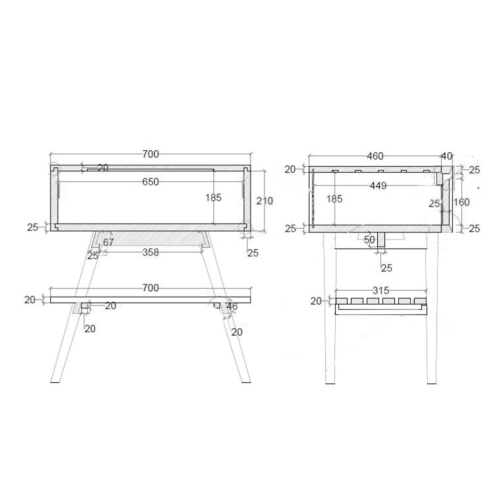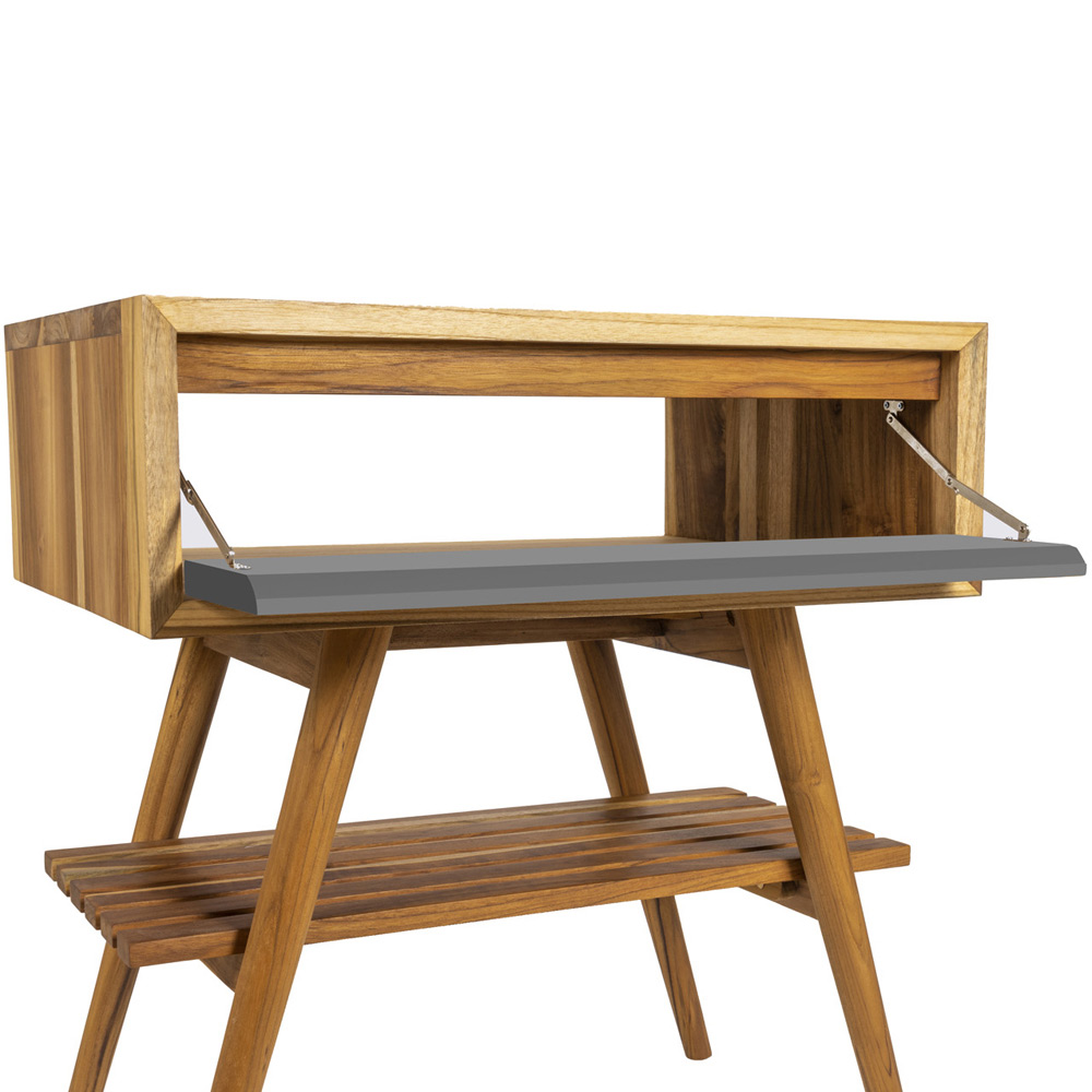 Badeværelsesskab af teakgulv med skuffe af grå mahogni.