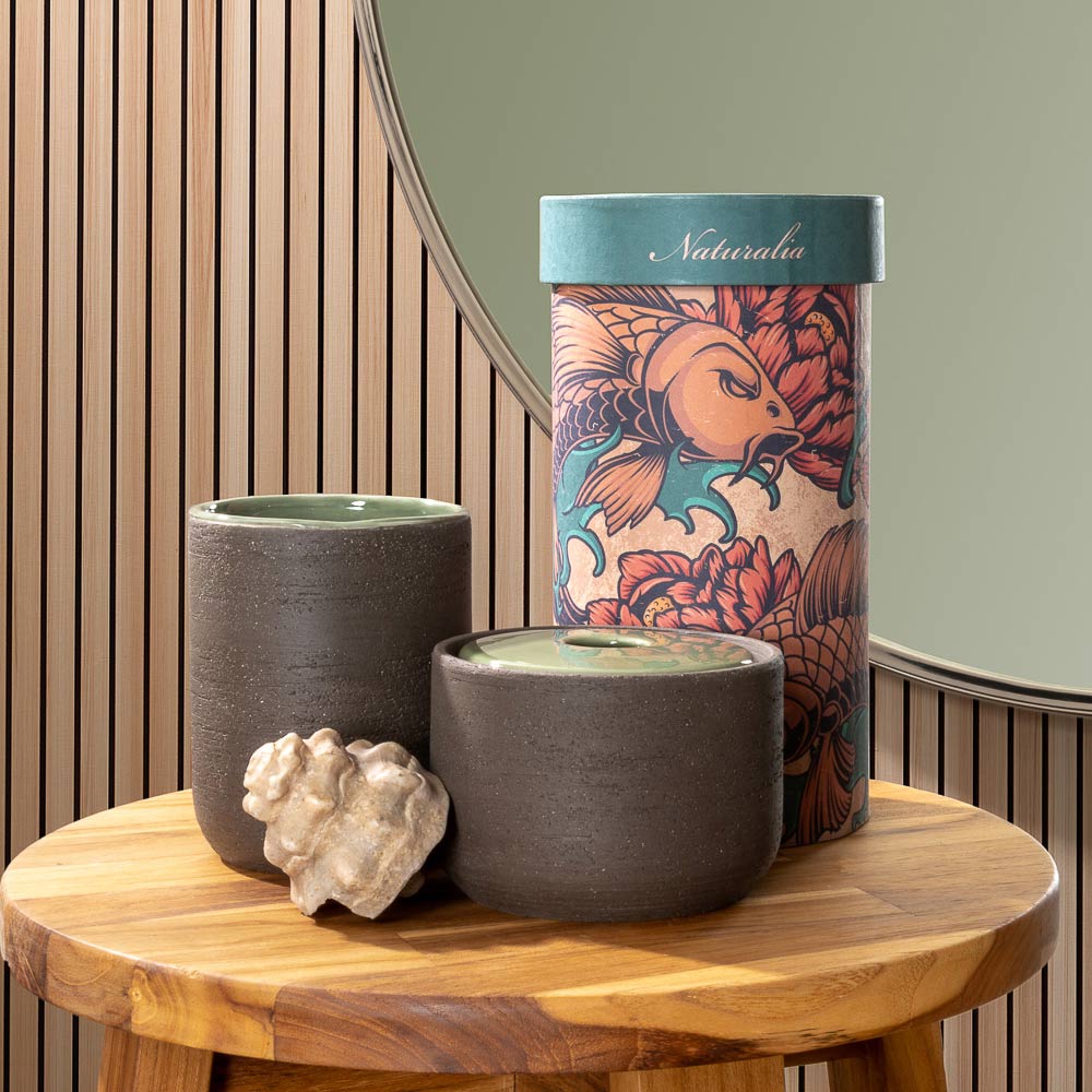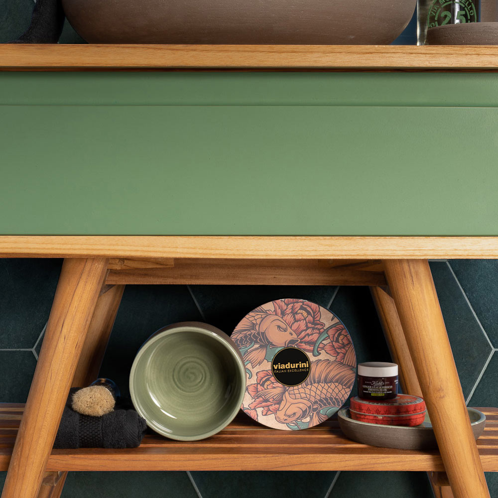 Badeværelsestilbehør i ildfast ler med grøn emaljeret interiør Made in Italy.