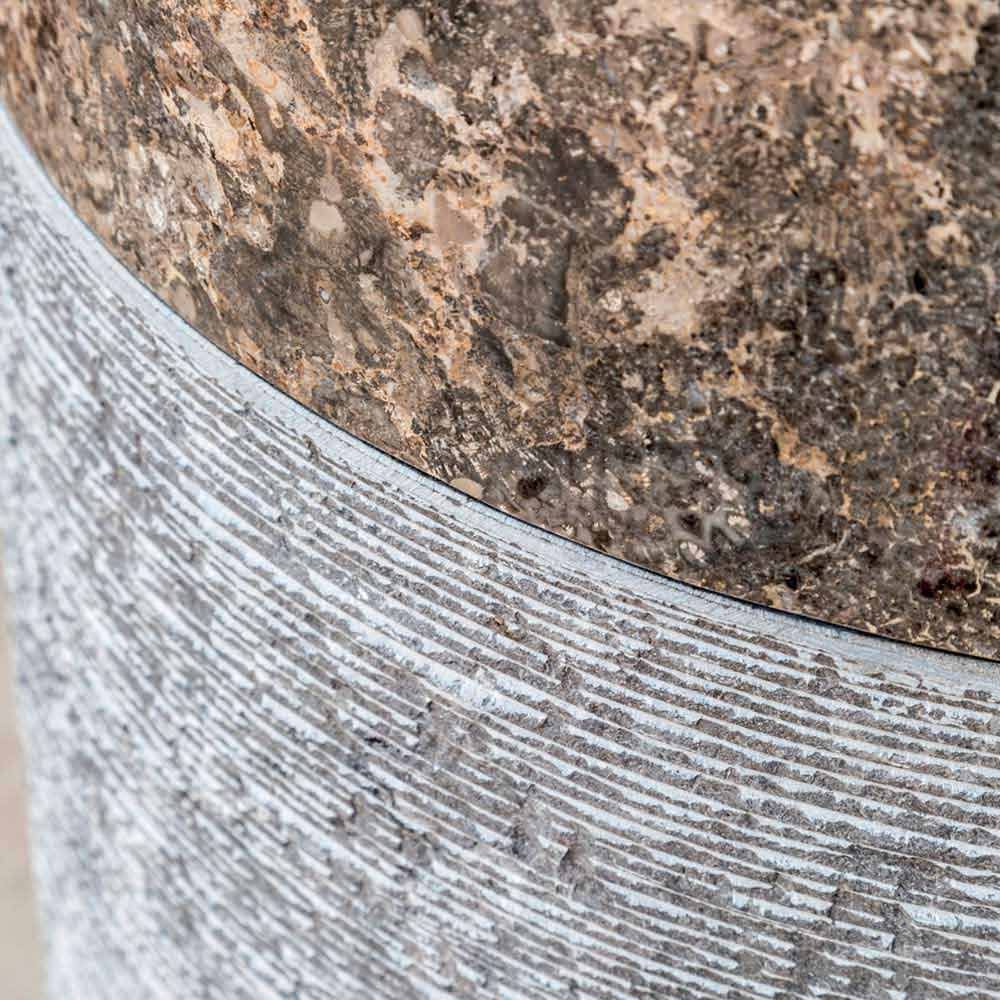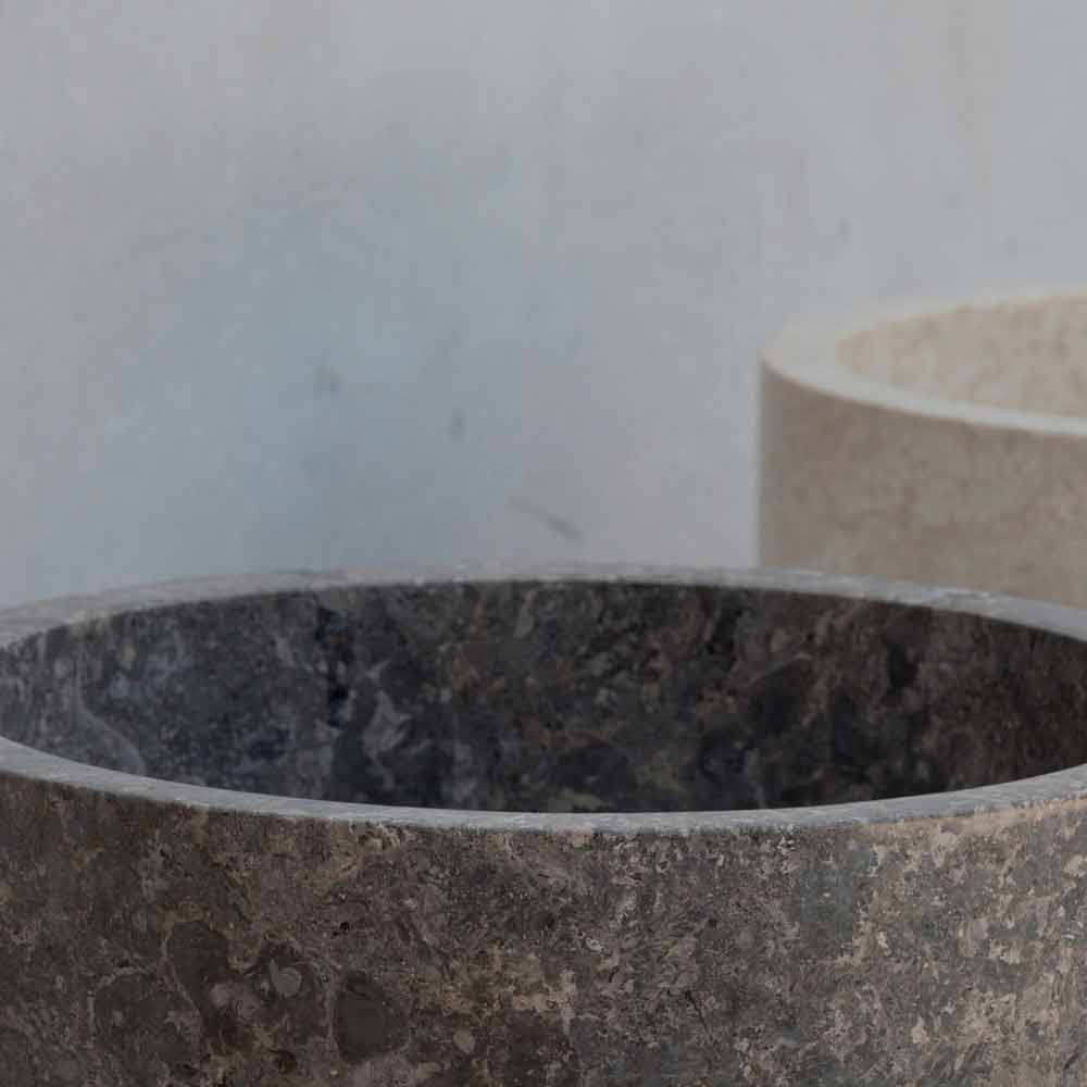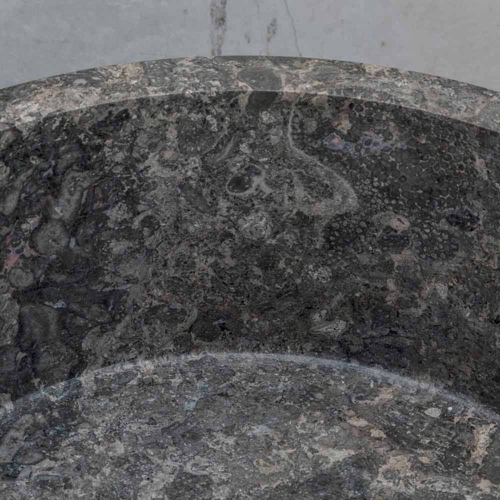 Fritstående marmorvask i natlige farver og variationer, der minder om stjerneskud. Sammensat i to dele, den første "bassinet" er i poleret marmor både udvendigt og indvendigt. Den anden del er "basen" lavet ved at dekorere den rå marmor med en drejeeffekt. Den type forarbejdning, der bruges til basen, kan skabe revner eller revner i marmoren, der IKKE KOMPROMISER vaskens integritet eller sikkerhed på nogen måde. Sådanne situationer betragtes ikke som produktfejl.
