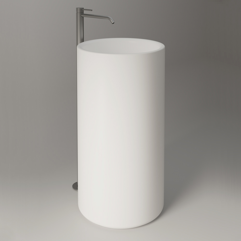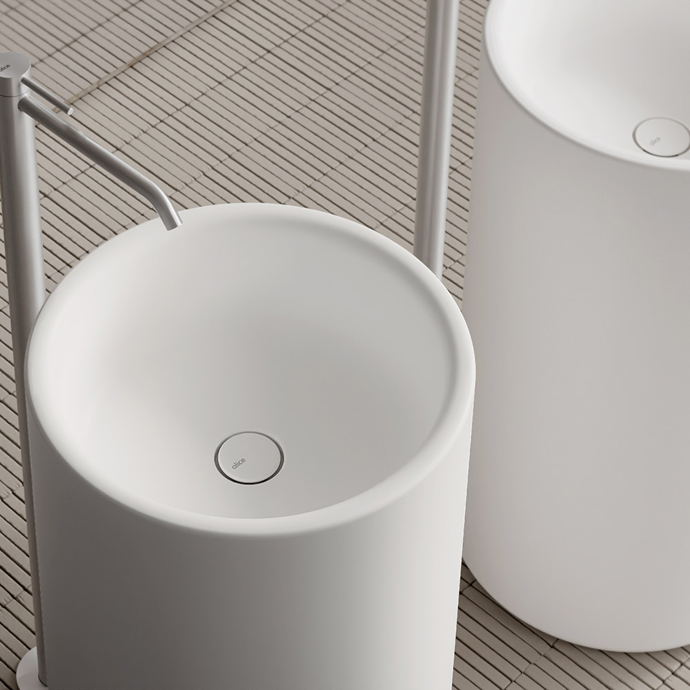 Denne fritstående keramiske håndvask har en enkel og harmonisk cylindrisk form, der er i stand til at forvandle badeværelset til et sofistikeret rum med stor personlighed.