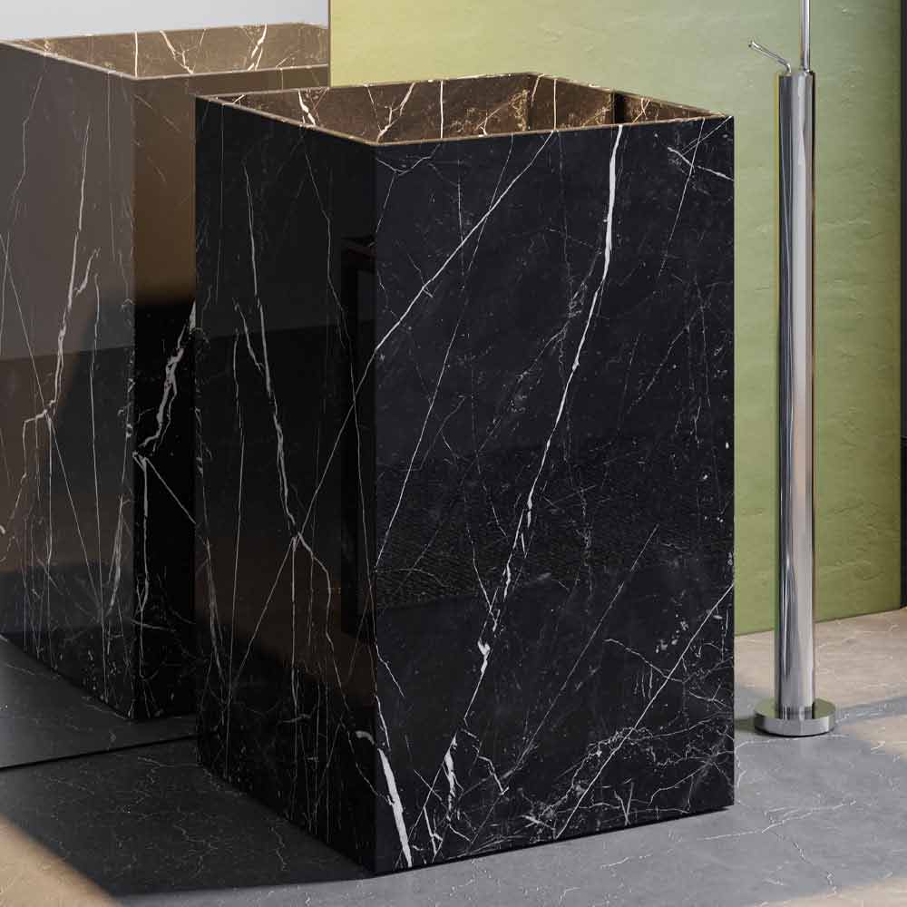 Fritstående håndvask til badeværelset i porcelænsstentøj, geometrisk design, høj kvalitet lavet i Italien.