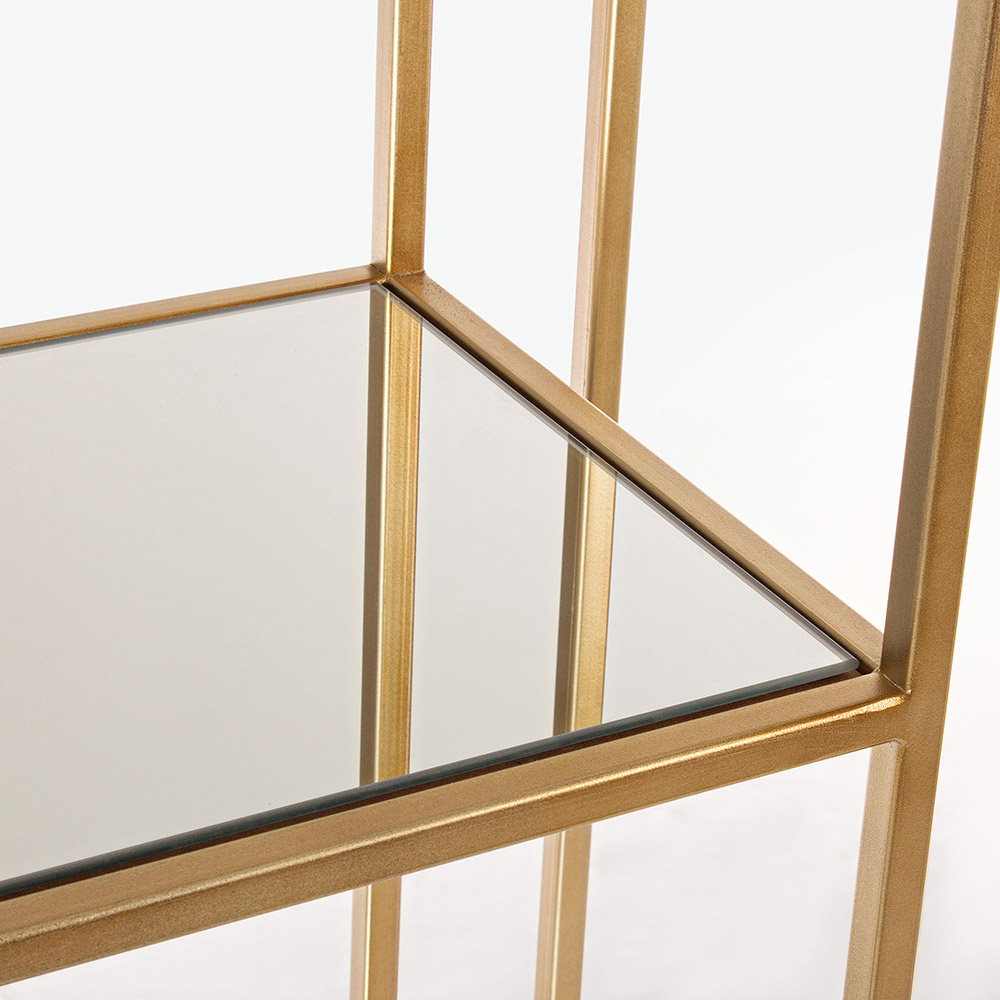 Denne fritstående reol har en epoxy pulverlakeret stålstruktur og glashylder, der måler 53,5 x 28 cm.