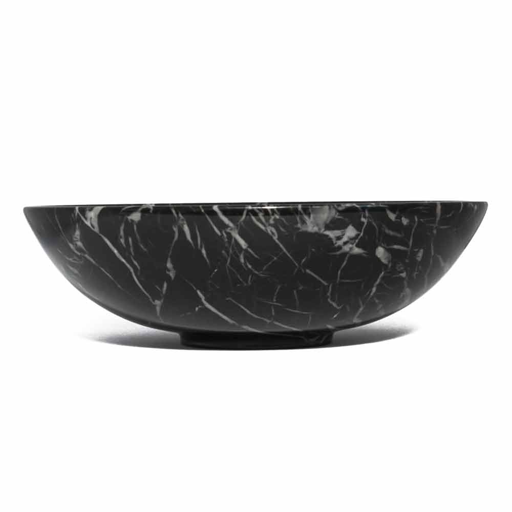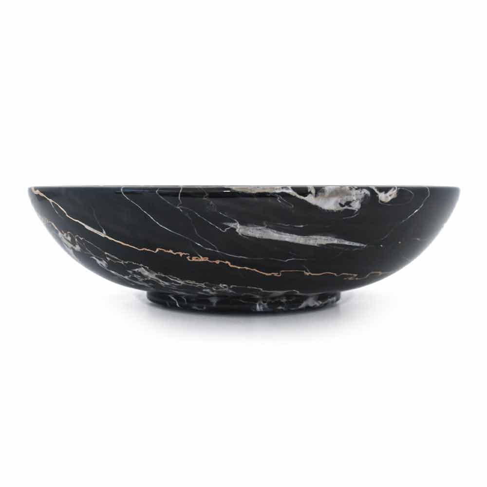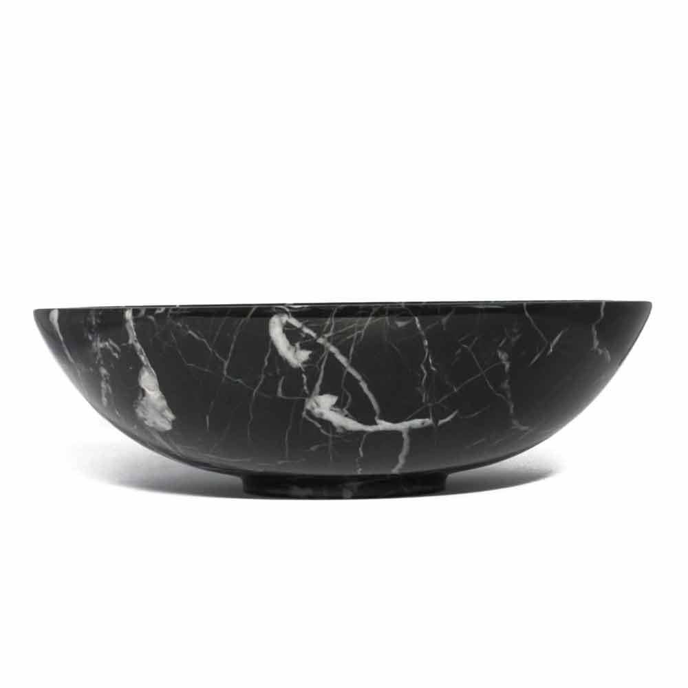 Rund frugtskål i Portoro, Paonazzo eller Marquinia marmor Lavet i Italien.
