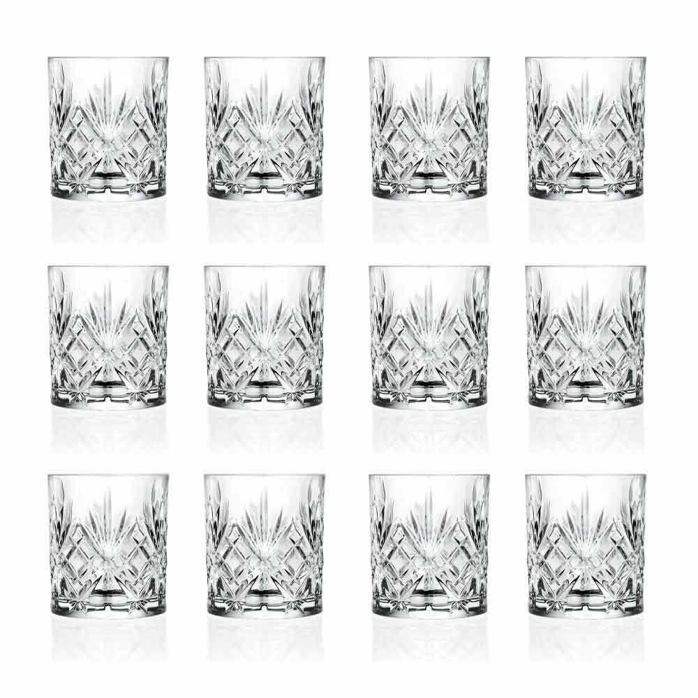 12 tumbler briller af gammeldags vintage design i økologisk krystal af høj kvalitet 100% fremstillet i Italien.