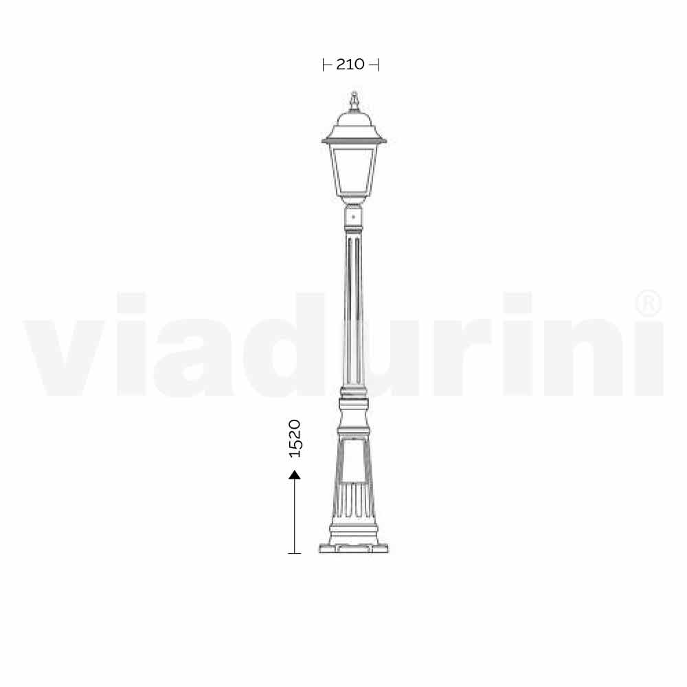 Aquilina er en en-lys udendørs gadelampe håndlavet i Italien med højkvalitets materiale: trykstøbt aluminium struktur og glas diffusor tilgængelig: gennemsigtig eller sandblæst.