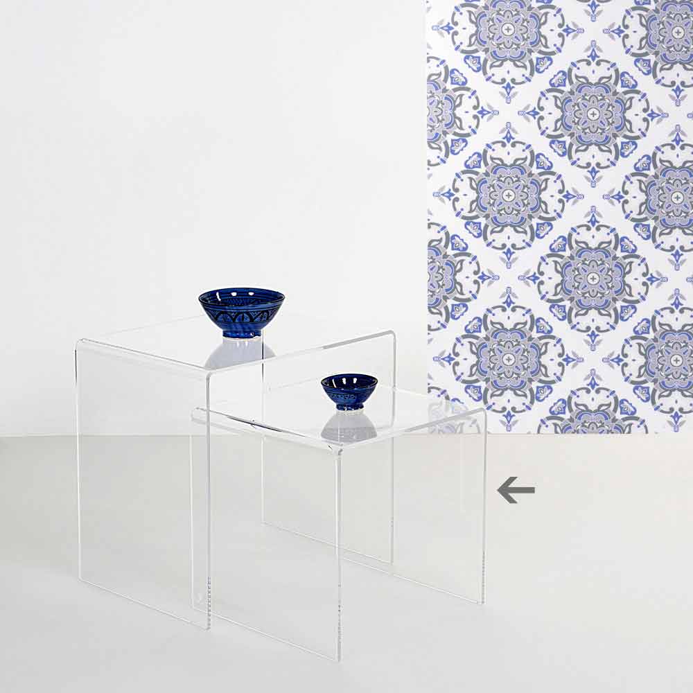 Gennemsigtig moderne design sofabord 40x40cm Terry Small, lavet i Italien